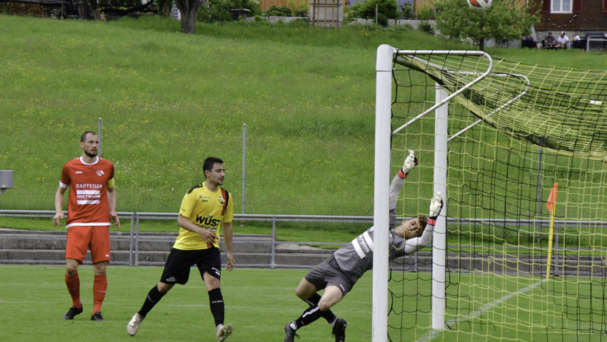 Vier Minuten später scheiterte Hujdur zum dritten Mal in dieser ersten Derby-Halbzeit am Aluminium. Die Altstätter Angreifer Sahin Irisme und Hujdur kombinierten sich immer wieder durch die Montlinger Abwehr. Die beiden waren die besten Spieler auf dem Platz und kaum zu stoppen. In der 40. Minute brauchte es einen Fabian Lüchinger in Hochform, als er einen Abschluss von Irisme, herrlich von Hujdur eingesetzt, mit einer sehenswerten Parade entschärfte. Zwei Minuten später kratzte Verteidiger Mauro Malacrida einen Ball kurz vor der Linie weg.