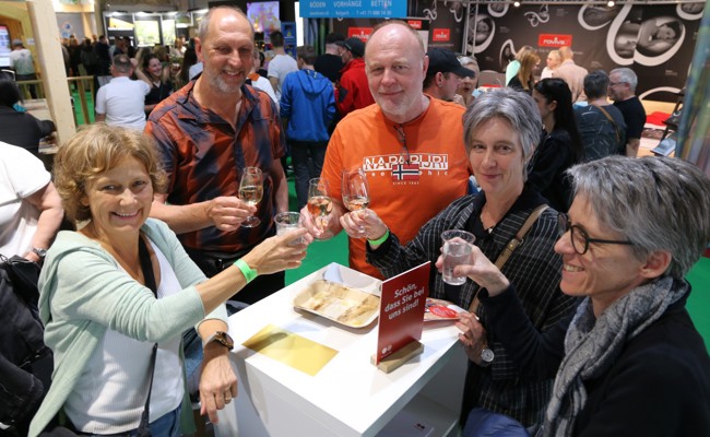 Anstossen, Freunde begrüssen, Glücksrad drehen: Die Messe ist in vollem Gang