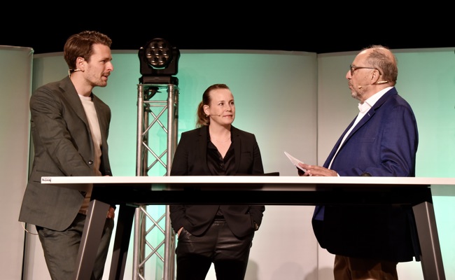 Jetzt gleich auf der Bühne: Nora Häuptle und Lukas Görtler, der vom Publikum mit dem Zusatz «Fussballgott» begrüsst wird.