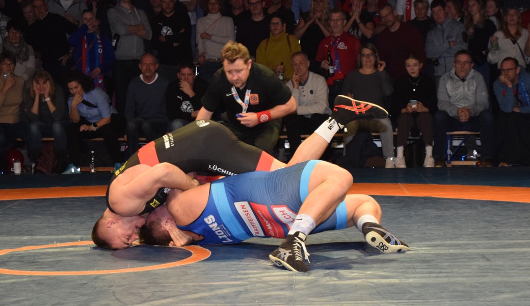 Auch der Poker mit Dominik Laritz, der ebenfalls eine Gewichtsklasse nach oben, auf 75 kg, geschoben wurde, brachte nicht den erhofften Erfolg. Zwar zeigte er sich im Freistilduell mit Tobias Portmann aktiver als in der Quali in Willisau, doch punkten konnte der Kriessner beim 0:6 nicht. Zum Sieg reichte es bis 75 kg Greco auch David Loher nicht, aber er zeigte sich im Vergleich zum letzten Duell mit Jonas Bossert deutlich verbessert. In einem zähen Kampf (1:6) holte er einen Mannschaftspunkt.