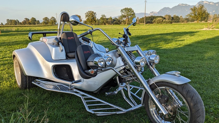 Das Vorderrad gleicht einem Chopper, die Fahrerposition ist ebenso tief. Hinten hat das Trike zwei Sitze, dahinter arbeitet bei neueren Baujahren meist ein amerikanischer V8-Motor – zu Beginn waren es VW-Käfer-Motoren. Ein urchiger Bayer sagte: «Vorn ein Motorradl und hinten ein Auto.»
