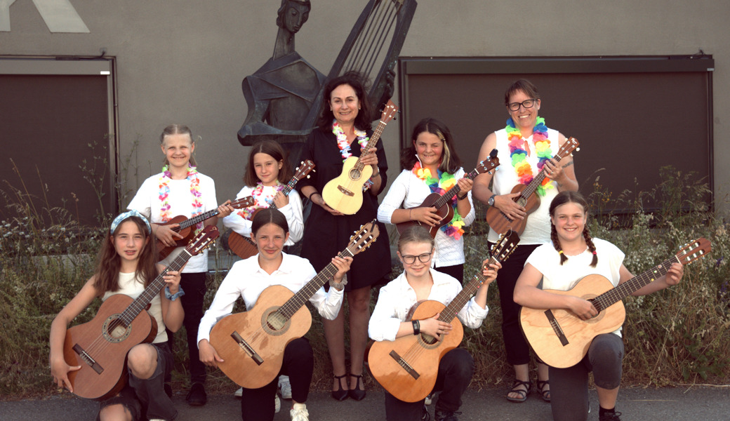 Zwischen ihren Auftritten bieten die Musikschülerinnen von Musiklehrerin Rebekka Nachbaur an der Gitarre und der Ukulele Musik aus verschiedenen Epochen dar. An der Gitarre spielen Amanda Benz, Mia Heither, Sandrine Hutter und Kaja Oberkofler. Mit der Ukulele treten Alessia Benz, Brigitte Gebert, Emma Heither, Livia Hobi und Elly Ritter auf. Bei schönem Wetter wird eine grosse Zuhörerschaft erwartet.