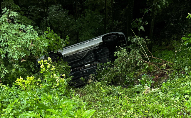 Das Auto stürzte in der Folge die Böschung hinunter und kam auf der Seite liegend im Wald zum Stillstand. Am Fahrzeug entstand Totalschaden. Der Lenker blieb unverletzt, musste sich aber einem Atemalkoholtest unterziehen und den Führerausweis auf der Stelle abgeben, wie die Kantonspolizei Appenzell Ausserrhoden in einer Mitteilung schreibt.