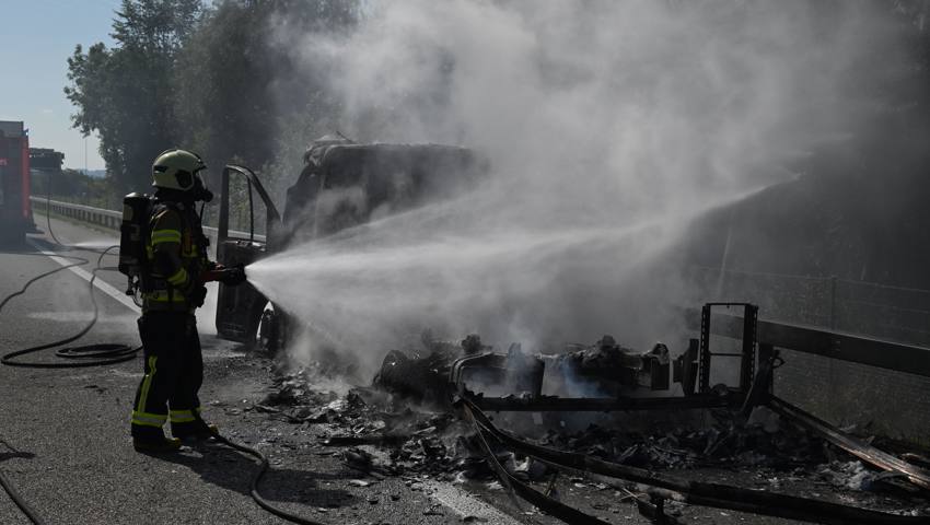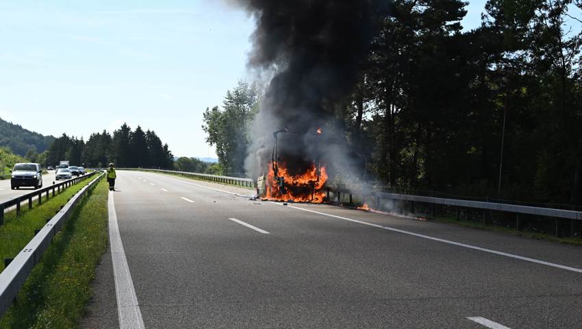 Lieferwagen geriet auf der Autobahn A1 in Brand: Normalspur musste für Löscharbeiten gesperrt werden