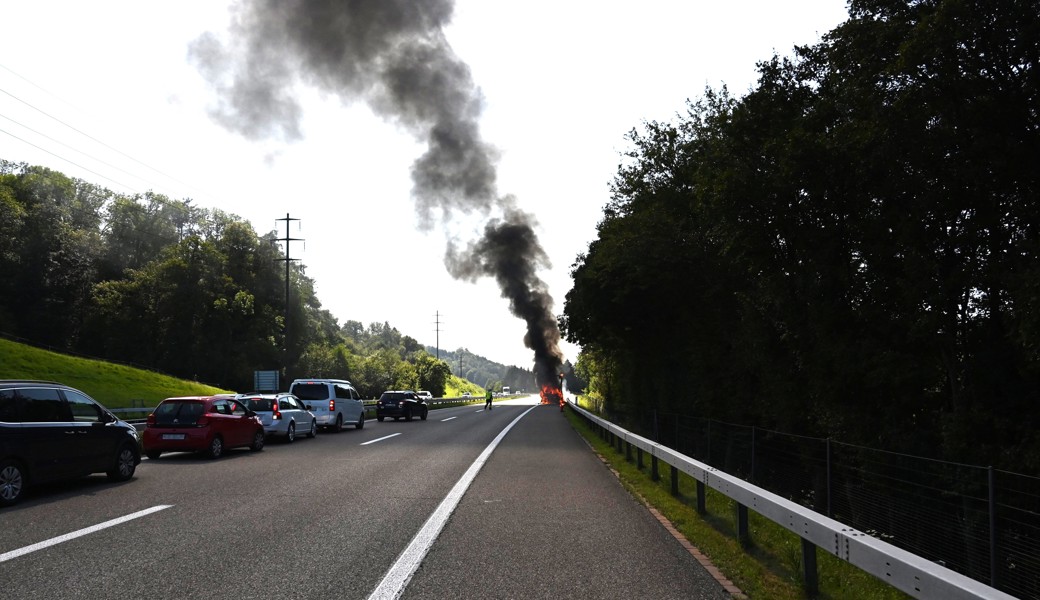 Der 23-jährige Fahrer des Lieferwagens sowie sein 36-jähriger Beifahrer konnten den Lieferwagen selbständig verlassen, schreibt die Kantonspolizei in einer Medienmitteilung. Die Feuerwehr konnte den Brand rasch löschen. Der 23-Jährige wurde mit Verdacht auf eine Rauchgasvergiftung durch den Rettungsdienst zur Kontrolle ins Spital gebracht. Sein Beifahrer blieb unverletzt. Als Brandursache steht ein technischer Defekt im Vordergrund. Während der Löscharbeiten musste der Normalstreifen gesperrt werden.