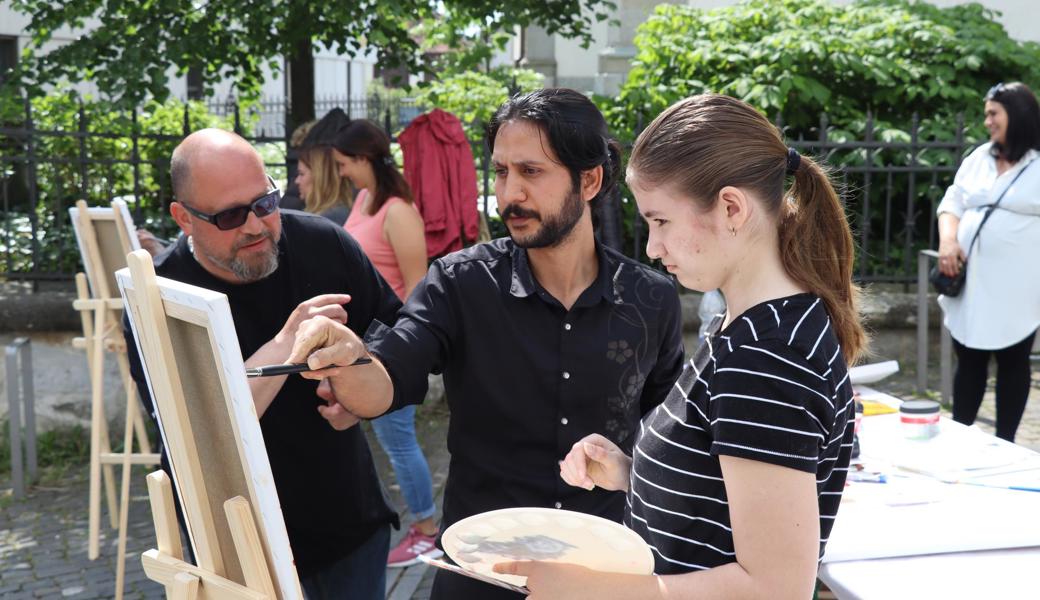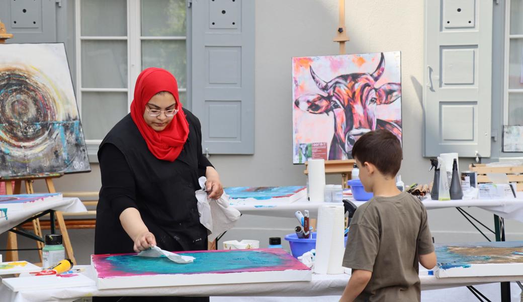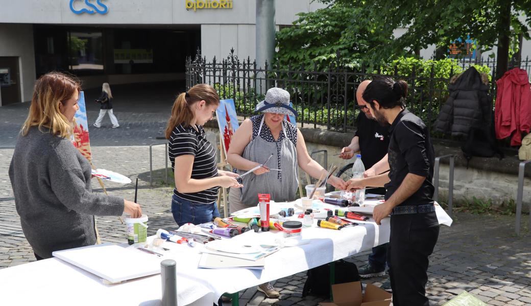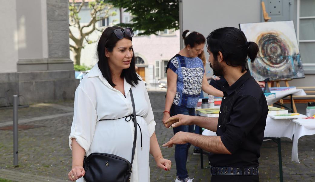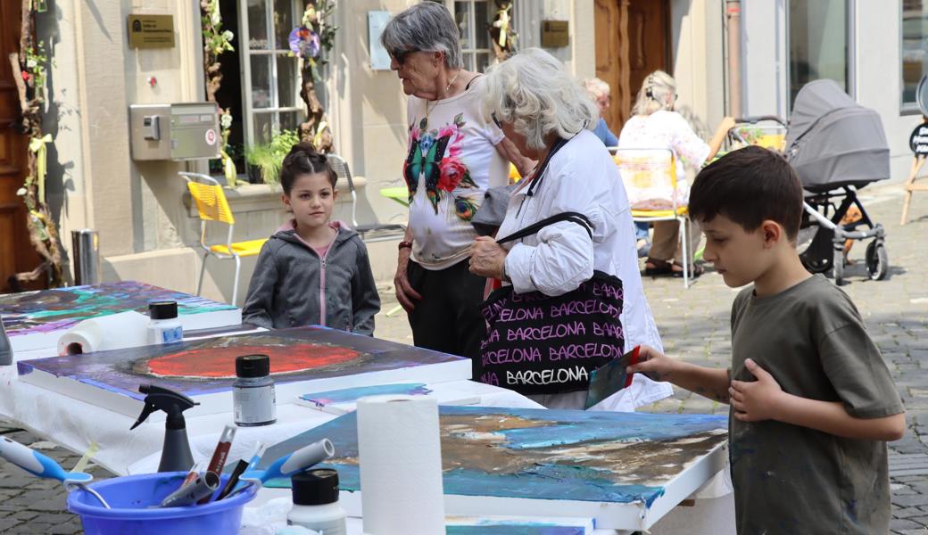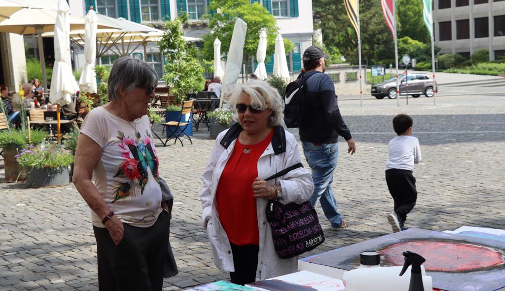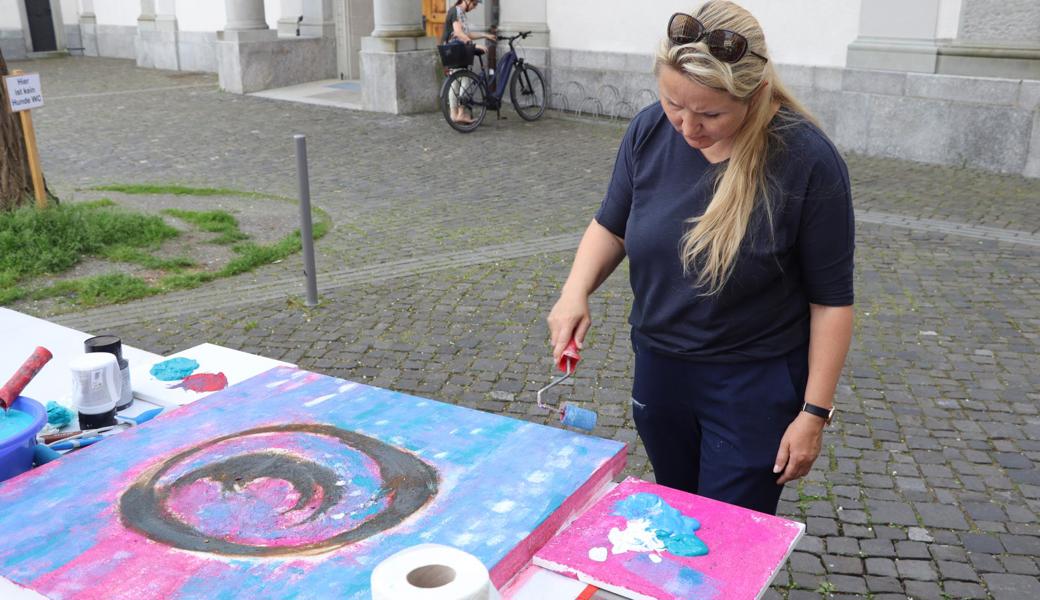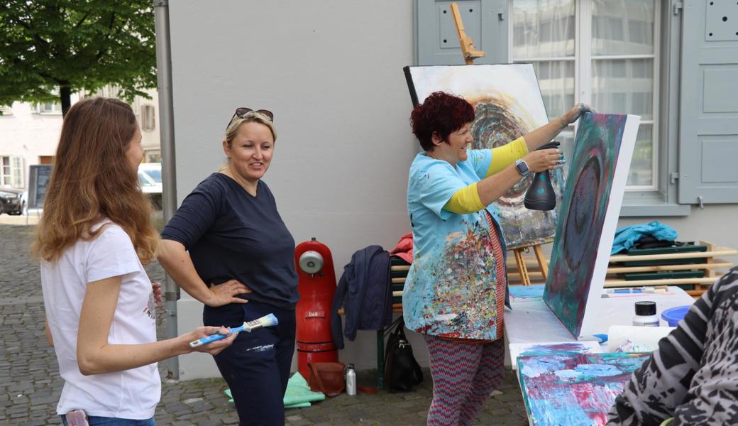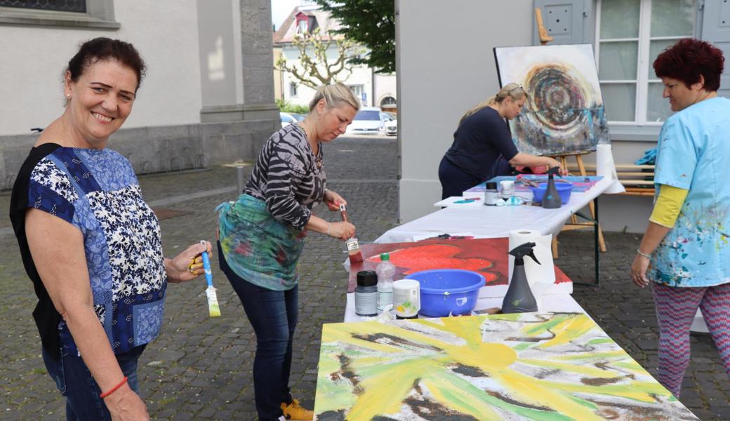 Dass Kunst verbindet, bewies am Samstagvormittag das Kunstprojekt "Malen auf dem Rathausplatz" der Fachstelle Integration des Vereins St. Galler Rheintal. Zwölf Künstlerinnen und Künstler mit Migrationshintergrund schufen unter der Anleitung von Jasi Hutter und Eisa Hashemi Werke mit Farbe. Am Sonntag, 15. Mai, findet ab 11 Uhr die Vernissage im Museum Prestegg statt.
