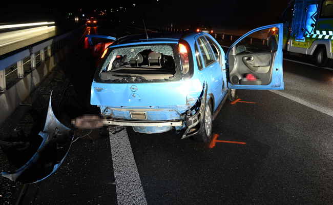 Der Mann verliess daraufhin sein Auto. Zur gleichen Zeit fuhr ein 71-Jähriger mit seinem Auto in dieselbe Richtung. Er bemerkte das Auto des 37-Jährigen zu spät. In der Folge prallte das Auto des 71-Jährigen in das stillstehende. Der 37-Jährige wurde dabei unbestimmt verletzt. Der Rettungsdienst hat ihn daraufhin ins Spital gebracht. Die Polizei schätzt, dass Sachschaden im Wert von mehreren zehntausend Franken entstanden ist.