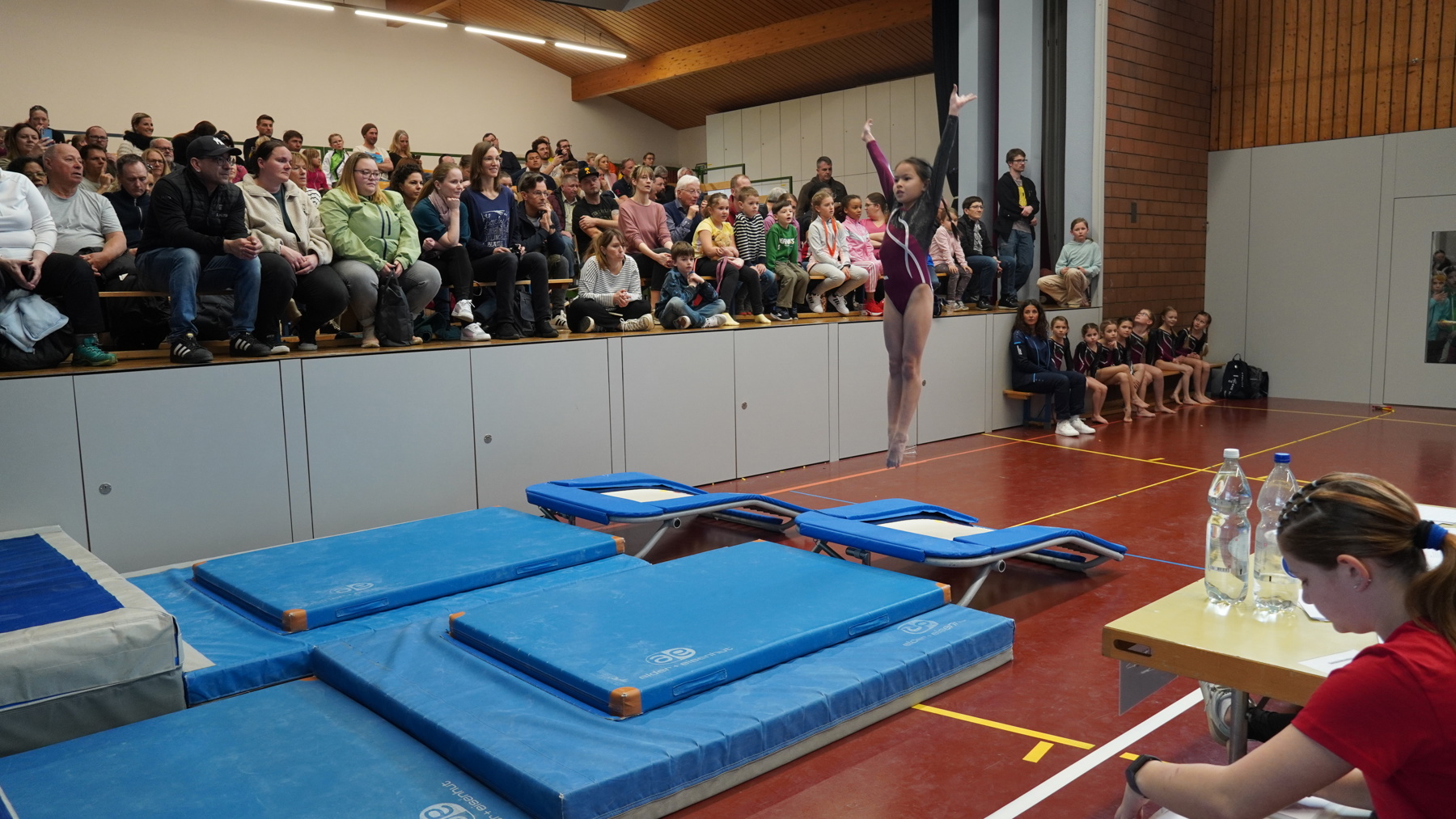 Genau das macht den Scholla-Cup besonders: Wettkampferfahrungen werden unter möglichst wenig Druck gesammelt, mit Betonung auf Motivation statt Ergebnis. Wegen der hohen Teilnehmerzahl starten die Turnerinnen und Turner gleichzeitig auf einer parallel aufgebauten Anlage. Für die ganz Kleinen gibt es ausserdem die Kategorie Träumli – noch vor K1 –, wo das Gelernte erstmals gezeigt werden kann. Die Übungen in der richtigen Reihenfolge und ohne ein Element zu vergessen zu präsentieren, erfordert volle Konzentration.