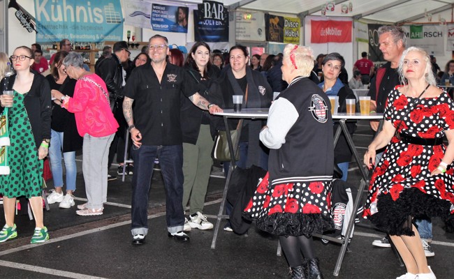AnmeldenDie Rockabilly Night bildete den Auftakt zu den zweitägigen Kreismusiktagen vom Samstag und Sonntag in Widnau. Im grossen Festzelt entführen The Rubberneckers die rund 1000 Besucherinnen und Besucher in die Zeit der 50er- und 60er-Jahre, um 22.30 Uhr spielen auch noch The Monroes. Im Publikum war der zu dieser Epoche passende Pin-Up-Look nicht zu übersehen.