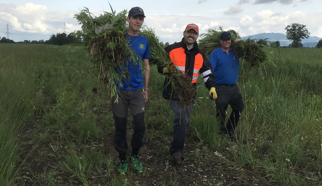 Besonders häufig treten auf: Einjähriges Berufkraut, Schmalblättriges Greiskraut und Spätblühende Goldrute. Passantinnen und Passanten, die solche Pflanzen entdecken, können diese möglichst samt den Wurzeln ausreissen und in die dafür bereitgestellten Behälter entsorgen. Die beschrifteten Behälter stehen während der Sommermonate auf dem Hochwasserdamm am oberen Rheinspitz, im Bereich der Panoramatafel und am unteren Rheinspitz. Die Leerung der Behälter erfolgt durch die Gemeinde. Invasive Neophyten aus Gärten oder privatem Umfeld können weiterhin kostenlos im offiziellen Neophytensack über den Kehricht entsorgt werden. Die Säcke sind gratis am Schalter der Gemeinde oder im Werkhof erhältlich.
