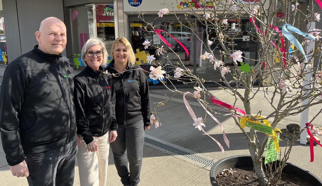 AnmeldenMitten im Dorf steht künftig ein Nuggibaum. Er soll den Kindern helfen, sich vom Schnuller zu trennen.
