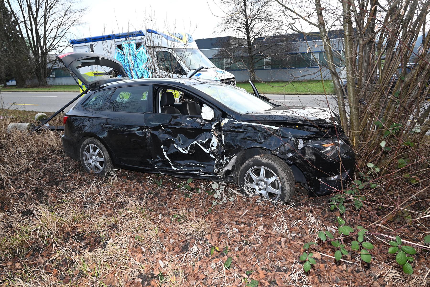 Um 14.40 Uhr, wurden die Kantonspolizei St. Gallen und der Rettungsdienst zu einem Unfall an der Burietstrasse in Staad gerufen. Ein Auto war auf der Fahrt von Thal Richtung Staad von der Fahrbahn abgekommen und mit einer Werbetafel sowie mehreren Bäumen zusammengestossen. Die beiden Insassen, der 47-jährige Autofahrer und sein 12-jähriger Mitfahrer, wurden leicht verletzt. Sie wurden ins Spital gebracht. Es entstand Sachschaden von mehreren zehntausend Franken. Die Kantonspolizei St. Gallen klärt die Unfallursache.
