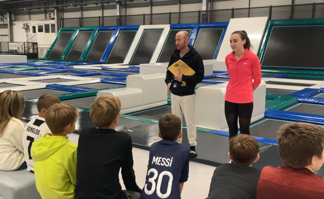 Flavio: Man kann das Erlebnis der Show kaum nachempfinden. Aber was die Geräte angeht, sind wir schon ziemlich nah dran. Die Bahnen im Parcours kann man auf verschiedenste Weise überqueren. Zusammen mit dem Trampolin ist alles da, um die Grundfertigkeiten zu festigen.
