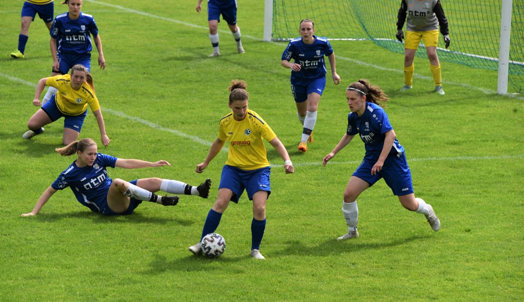 Noch keine Minute war vergangen, da klingelte es erstmals im Tor der Gastgeberinnen. Es war Eva Dietsche, die eine unübersichtliche Aktion mit dem Tor zum 1:0 nutzte. Nach einer guten Viertelstunde folgte die Szene des Tages: Sonja Kutzer traf die Lattenunterkante, worauf der Ball die Torlinie wohl überquerte. Dass der Schiedsrichter das Tor nicht gab, gab beim Publikum viel zu reden.