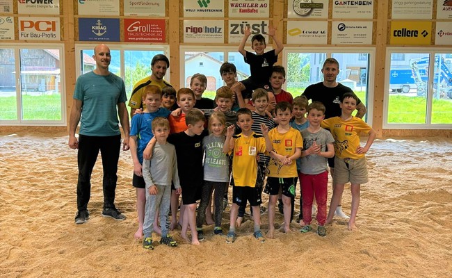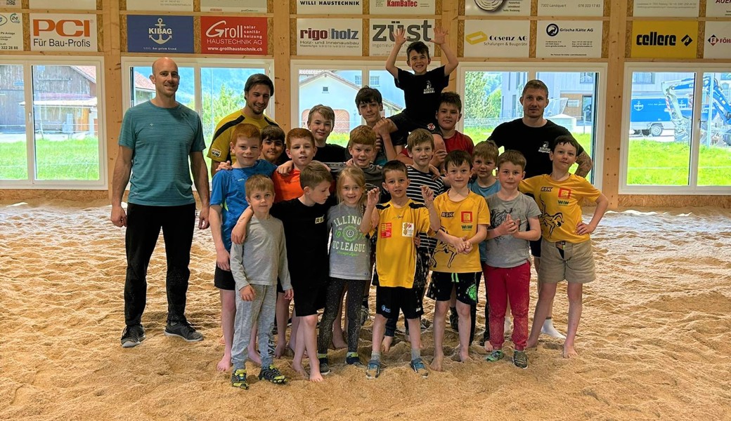 Neben Fussball und Spielen auf dem nahen Fussballplatz ging es noch ins Sägemehl, wo man erste Gehversuche im Sägemehlringen, einer traditionellen Form des Ringsports, machte.