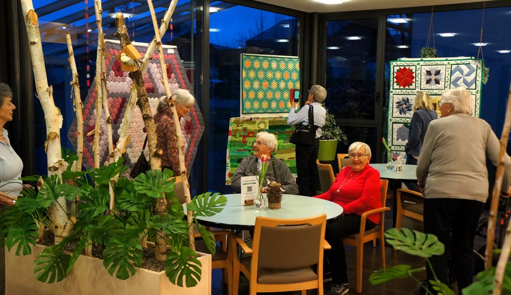 Es herrschte eine eindrückliche Atmosphäre in der Cafeteria des Verahus und die gezeigten Werke wurden begutachtet, bestaunt und bewundert. Die einzelnen Werke überzeugten nicht nur durch die Wirkung der Muster und Farben, sondern auch durch die exakte Verarbeitung und den spürbaren Aufwand, der diesen Ergebnissen vorausgegangen sein musste.
