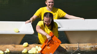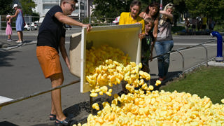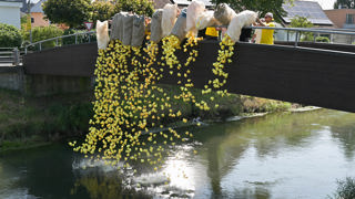 Nach einem Unterbruch von zwei Jahren lud der TV Widnau am Samstag zum Binnenfest mit dem traditionellen Entenrennen ein. 4200 Plastikentchen wurden beim Sonnensteg zu Wasser gelassen. Hier gibt's ein paar Eindrücke davon.