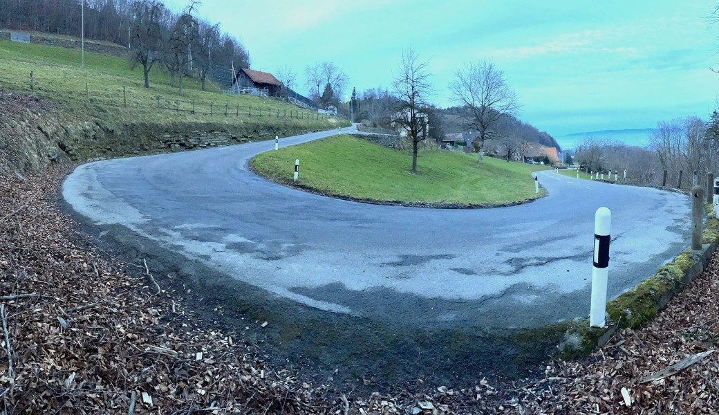 Der Zustand der Stützmauern in der Spitzkurve ist sehr schlecht, und auch die Beläge und die Entwässerung sind schadhaft. Die Fahrbahn ist schmal und entspricht nicht dem heutigen Standard einer Lokalverbindungsstrasse. Risse und Setzungen in der Fahrbahn weisen auf den ungenügend tragfähigen Strassenoberbau hin. Mit der Sanierung wird die Fahrbahn analog dem bereits ausgebauten Abschnitt auf 5.50 Meter verbreitert. Sämtliche Stützkonstruktionen werden ersetzt. Gleichzeitig werden auch der Strassenoberbau, die Beläge und die Strassenentwässerung erneuert.
