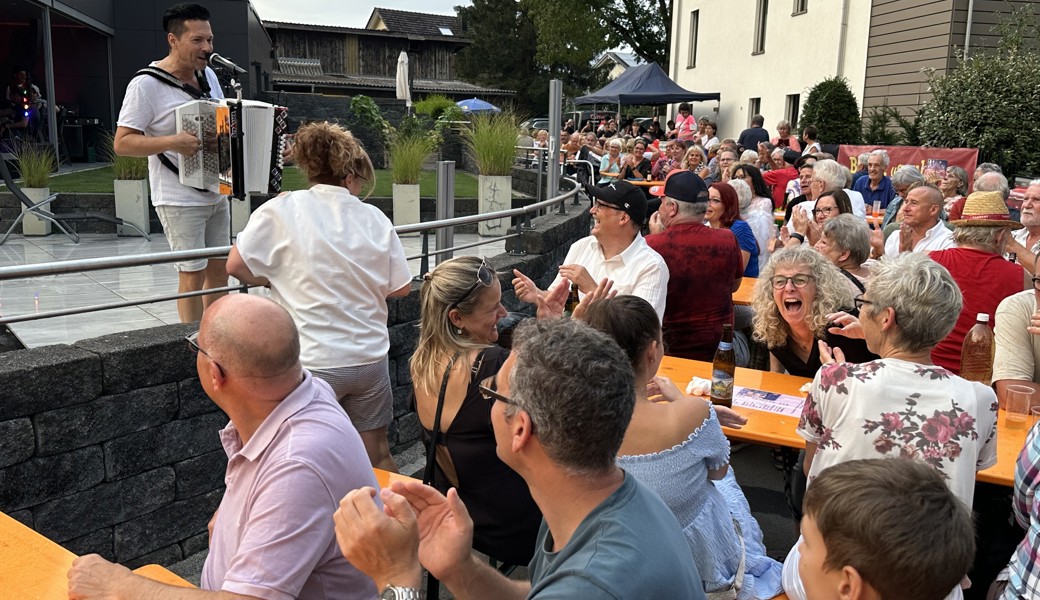Gekommen sind rund 300 Gäste aus dem Dorf, der Region und teils von weit her mit dem Wohnmobil. Alle wurden mit einem abwechslungsreichen und unterhaltsamen Programm belohnt. Den Auftakt machte die einheimische Musikgesellschaft Rüthi. Im Anschluss sorgten «Der Kofler» sowie Markus Wolfahrt für Stimmung. Der ehemalige Bandleader der «Klostertaler» verstand es, das Publikum mitzureissen und sowohl mit neuen Titeln als auch alten «Klostertaler»-Hits bestens zu unterhalten. Zwischen den verschiedenen Programmpunkten trat das Comedy-Duo «Messer und Gabel» auf. Der eigentliche Höhepunkt des Abends war der Auftritt der «Partyhelden». Bei ihrem Hit «Dini Seel ä chli la bambälä la» - welcher auf Youtube bereits über 3,5 Millionen Mal angesehen wurde – war das Publikum nicht mehr zu halten.