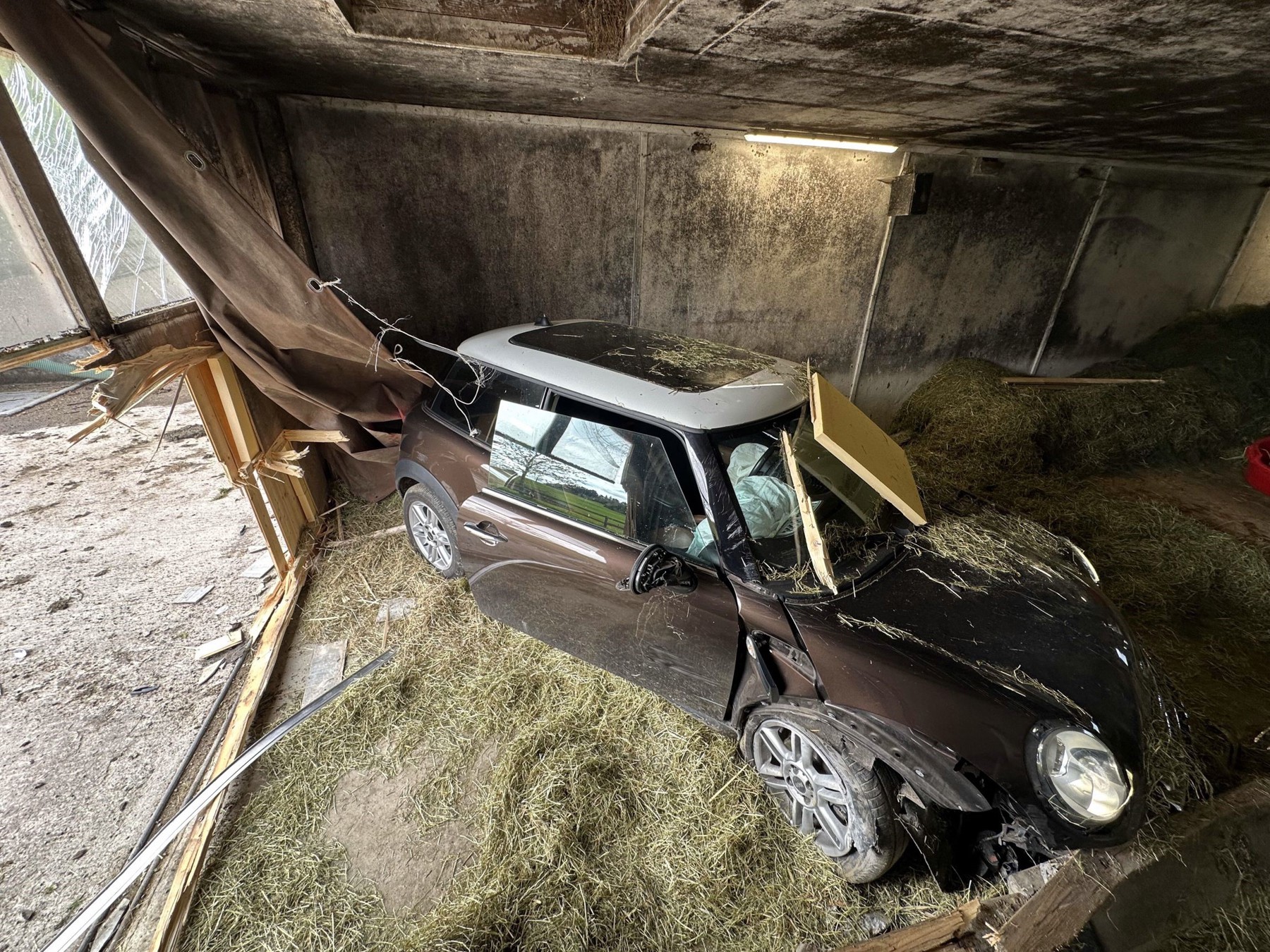 AnmeldenEine 39-Jährige kam mit ihrem Auto von der Strasse ab und beendete die Fahrt in einem Kuhstall. Sie verletzte sich zum Glück nur leicht. Den Kühen geschah nichts.