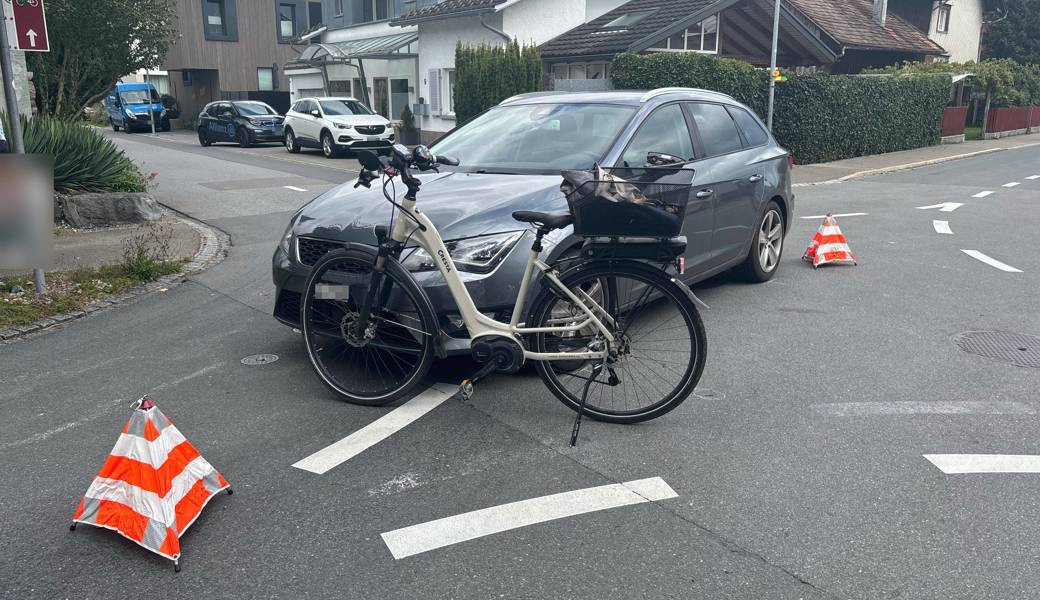 Eine 78-jährige Frau fuhr mit ihrem E-Bike um 14.45 Uhr auf der Säntisstrasse von Rebstein in Richtung Heerbrugg. Gleichzeitig fuhr eine 31-jährige Frau mit ihrem Auto auf der Wiesenstrasse von der Rietstrasse in Richtung Hauptstrasse. Im Bereich der Kreuzung Säntisstrasse/Wiesenstrasse stiessen die beiden Fahrzeuge zusammen. Die 78-Jährige stürzte und verletzte sich leicht. Der Rettungsdienst brachte sie ins Spital. Es entstand Sachschaden von über 5'000 Franken.
