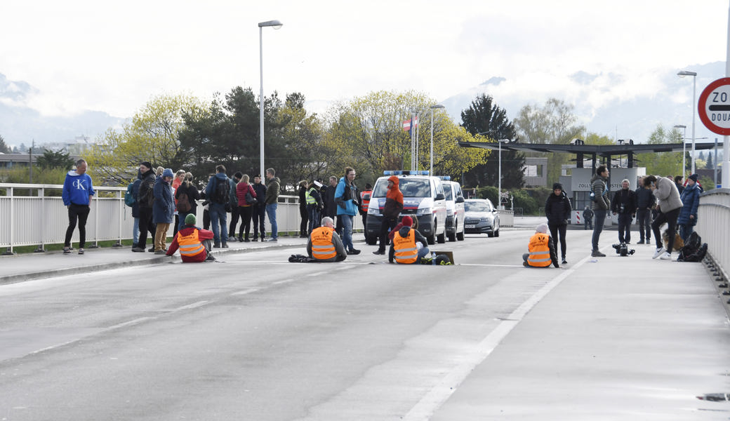 Am Mittwochmorgen war während zwei Stunden kein Vorbeikommen an den Klima-Klebern: Vier Personen begaben sich um 7.30 Uhr in den bereits stehenden Verkehr und setzten sich auf der österreichischen Seite der Zollbrücke und klebten sich mit den Händen auf der Fahrbahn fest. Das Zollamt Au war geschlossen und die Brücke nach Lustenau konnte nicht befahren werden. Wer über die Grenze wollte, musste über andere Zollämter ausweichen.