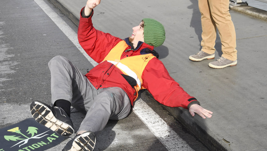 Aktivisten klebten sich auf der Zollbrücke Au-Lustenau fest