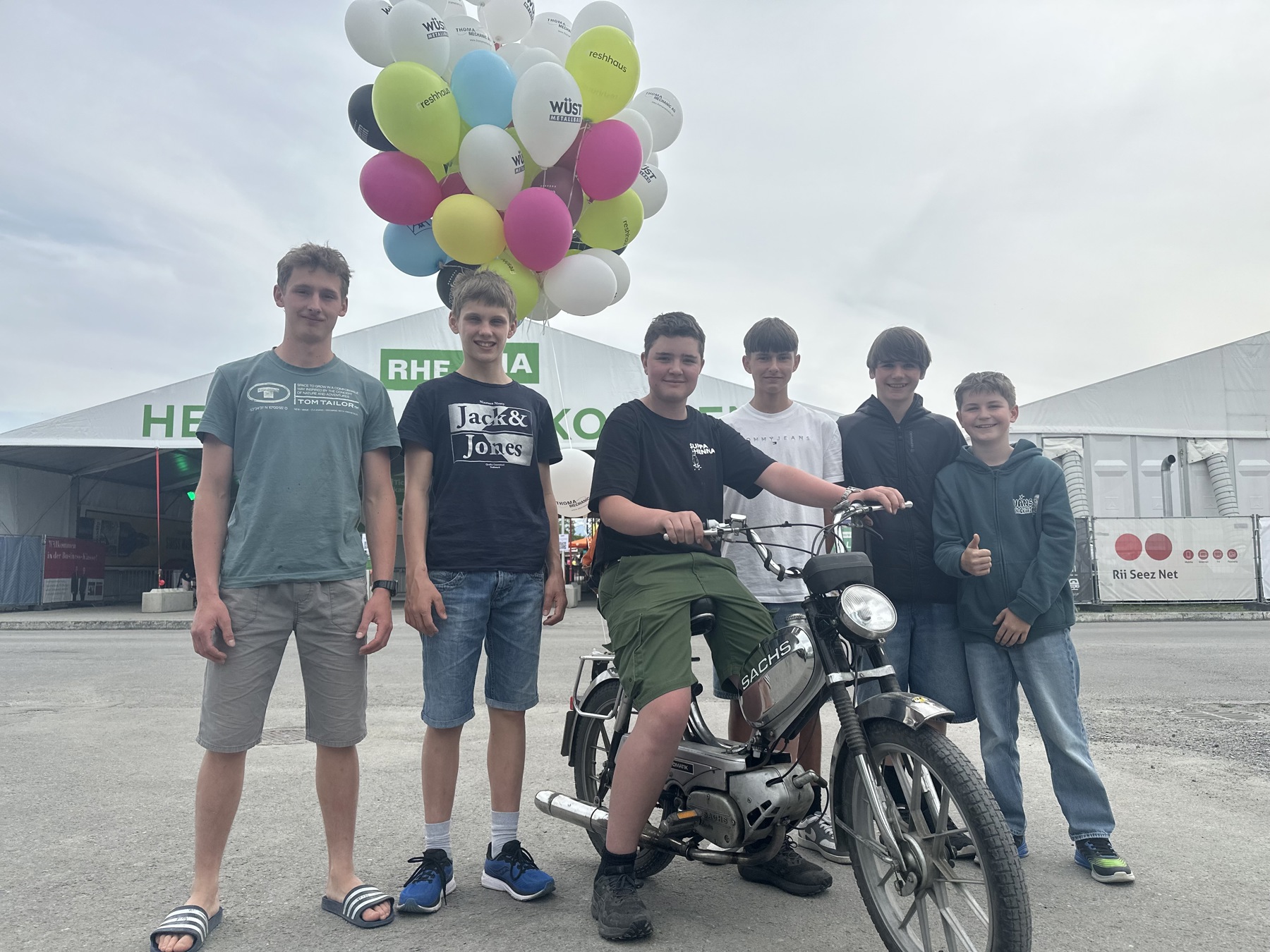 Am Gepäckträger angemacht: Mit 50 Ballons auf dem Töffli