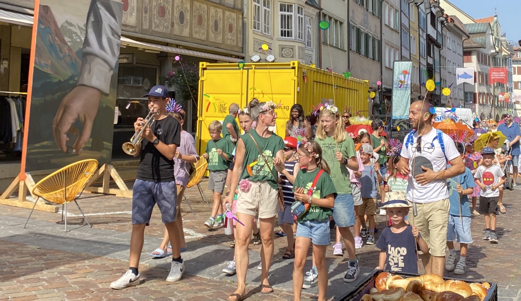 AnmeldenDer Staablueme Kinderumzug brachte am Mittwochnachmittag jede Menge Farbe ins Altstätter Städtli.