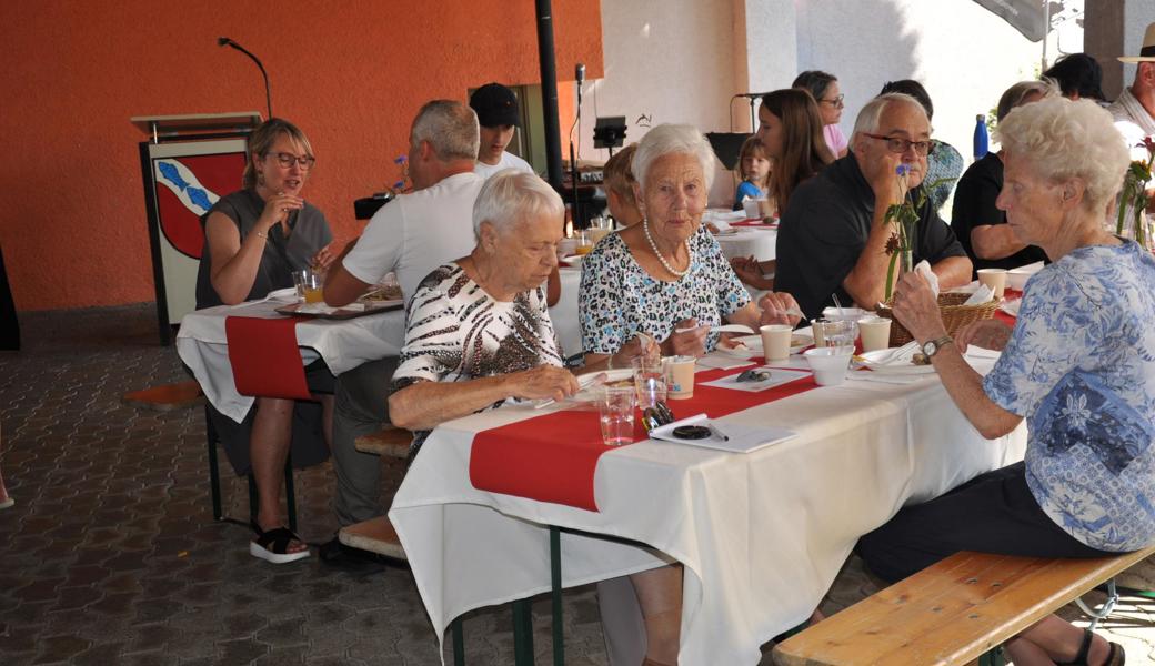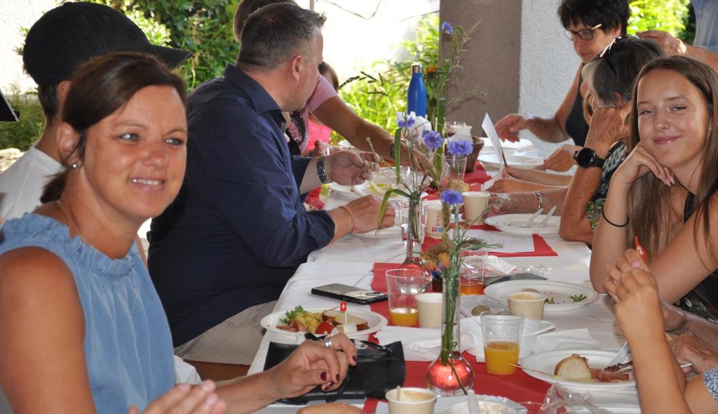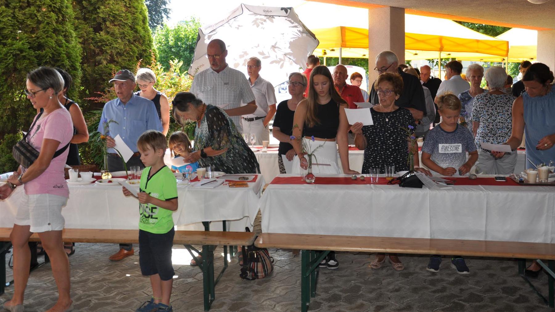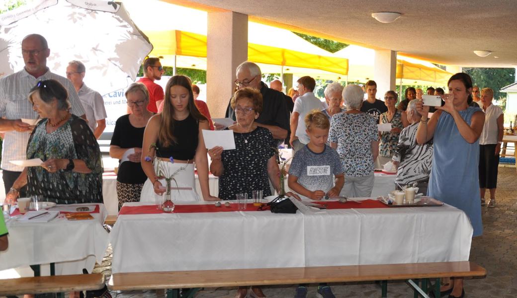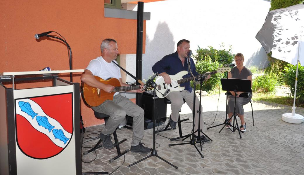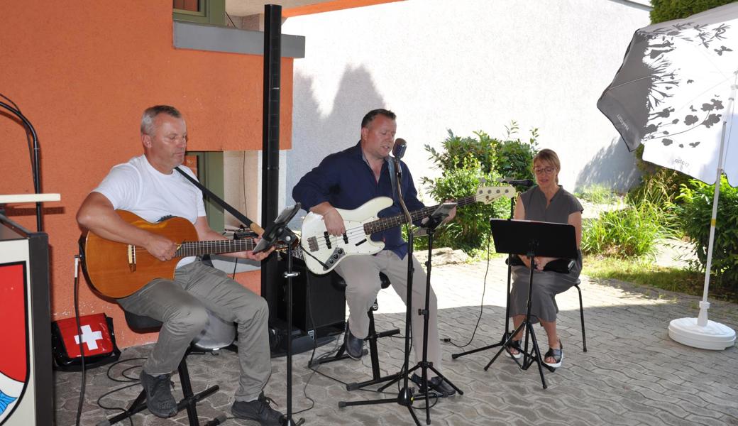 Die Schweiz müsse zudem mehr tun für die Armee. Stattdessen werde «die Verteidigung ausgehungert», hiess es an die Adresse von Bundesrätin Viola Amherd als Vorsteherin des VBS. «Wir brauchen eine bewaffnete Verteidigung, um anderen keine Einladung zu geben, die Schweiz zu bedrohen, machte Vizekantonspräsidentin Andrea Schöb deutlich. [caption_left: Musikalisch unterhielt das Trio "handmade" um Musiklehrer und Schulkommissionsmitglied Lorenzo Togni (Mitte). Elke Griesfelder begleitete auf der Flöte, Volker Sauter mit Gitarre und Gesang. (Bild: acp)]