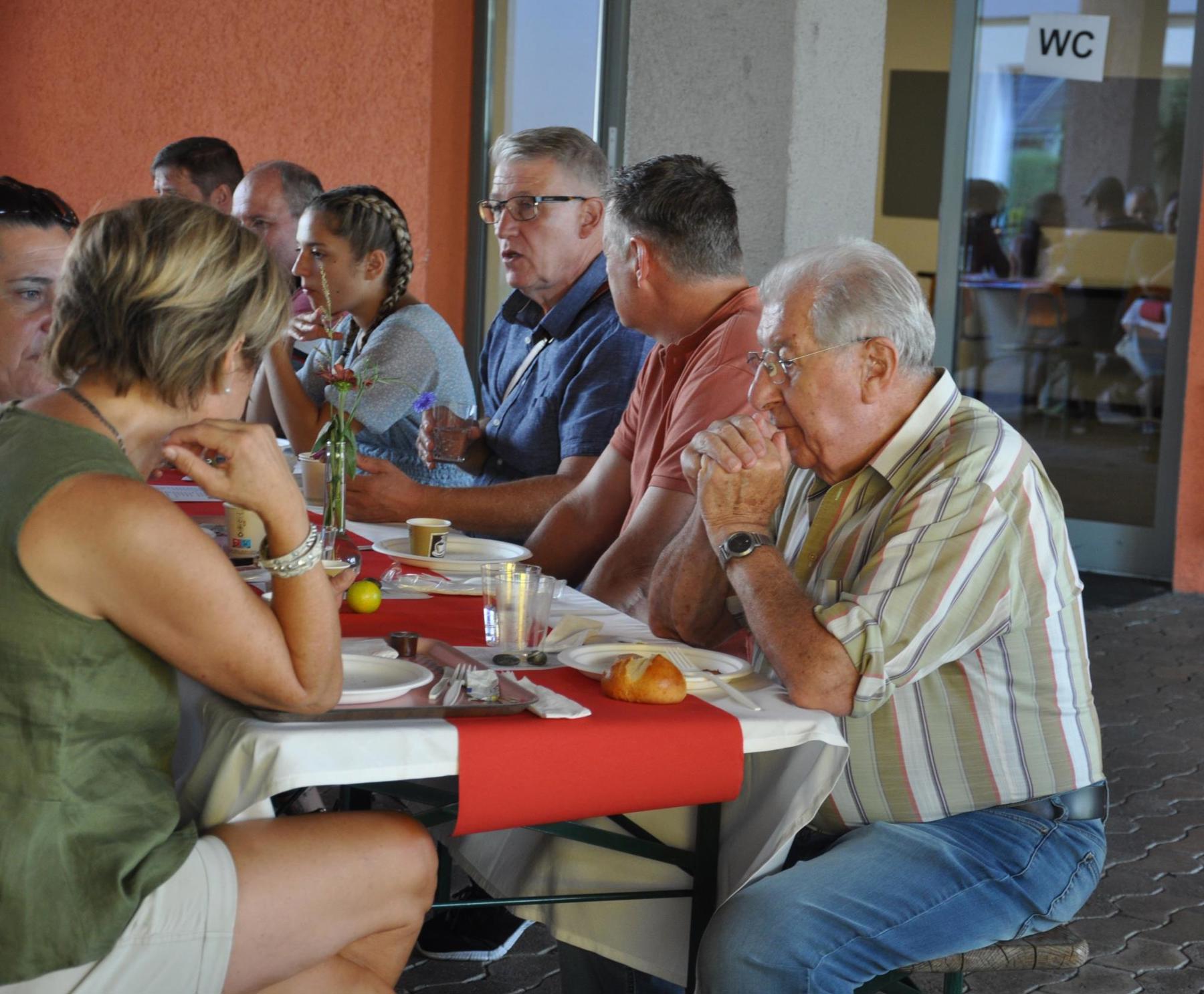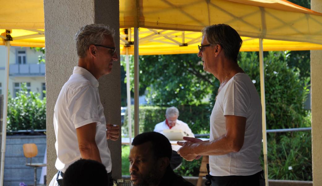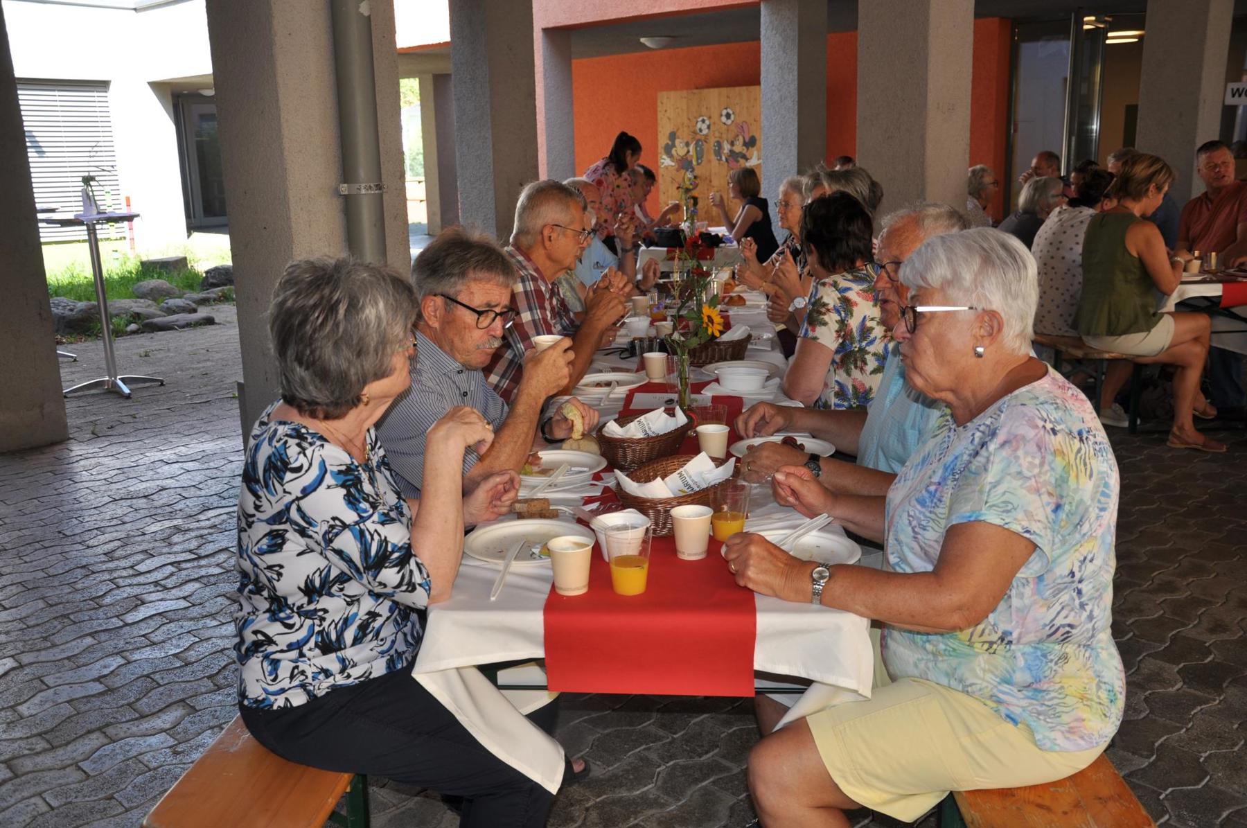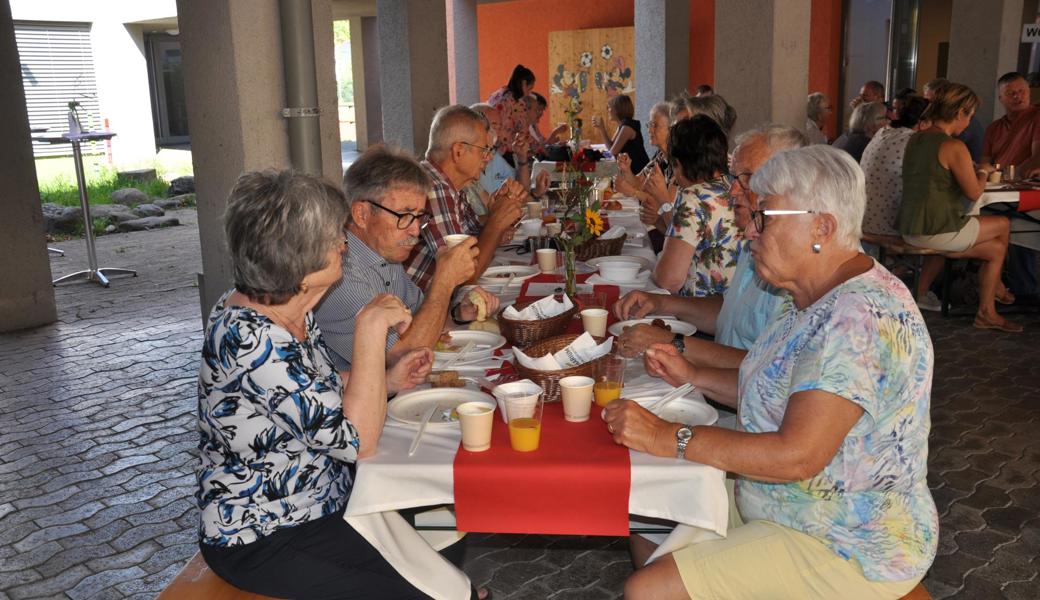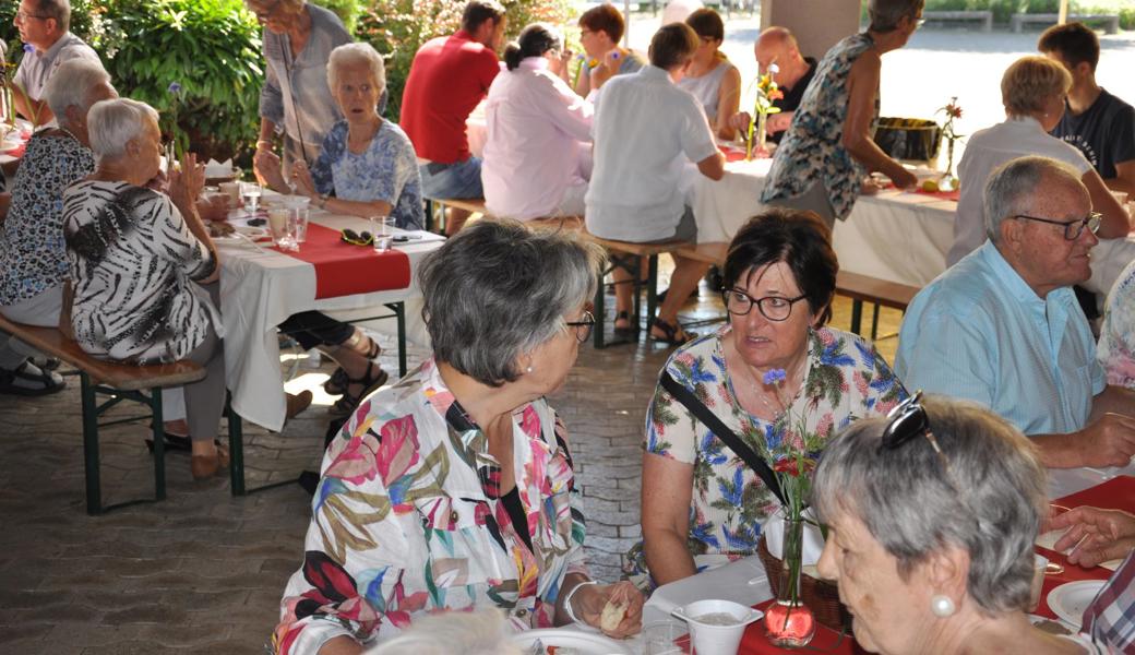 Die Schweiz müsse zudem mehr tun für die Armee. Stattdessen werde «die Verteidigung ausgehungert», hiess es an die Adresse von Bundesrätin Viola Amherd als Vorsteherin des VBS. «Wir brauchen eine bewaffnete Verteidigung, um anderen keine Einladung zu geben, die Schweiz zu bedrohen, machte Vizekantonspräsidentin Andrea Schöb deutlich. [caption_left: Musikalisch unterhielt das Trio "handmade" um Musiklehrer und Schulkommissionsmitglied Lorenzo Togni (Mitte). Elke Griesfelder begleitete auf der Flöte, Volker Sauter mit Gitarre und Gesang. (Bild: acp)]