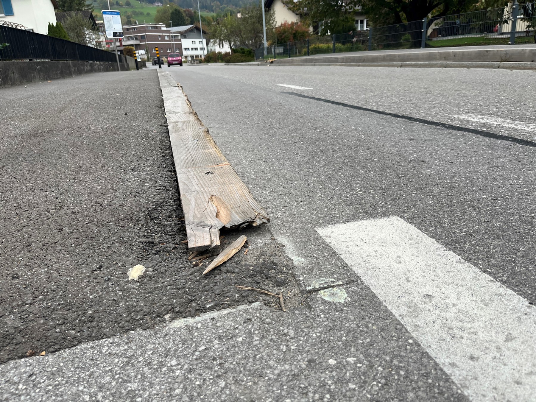AnmeldenDie Haltestelle Feldbrugg an der Feldwiesenstrasse in Lüchingen gibt es erst seit einem dreiviertel Jahr. Doch die Holzkante ist bereits beidseitig stark beschädigt.