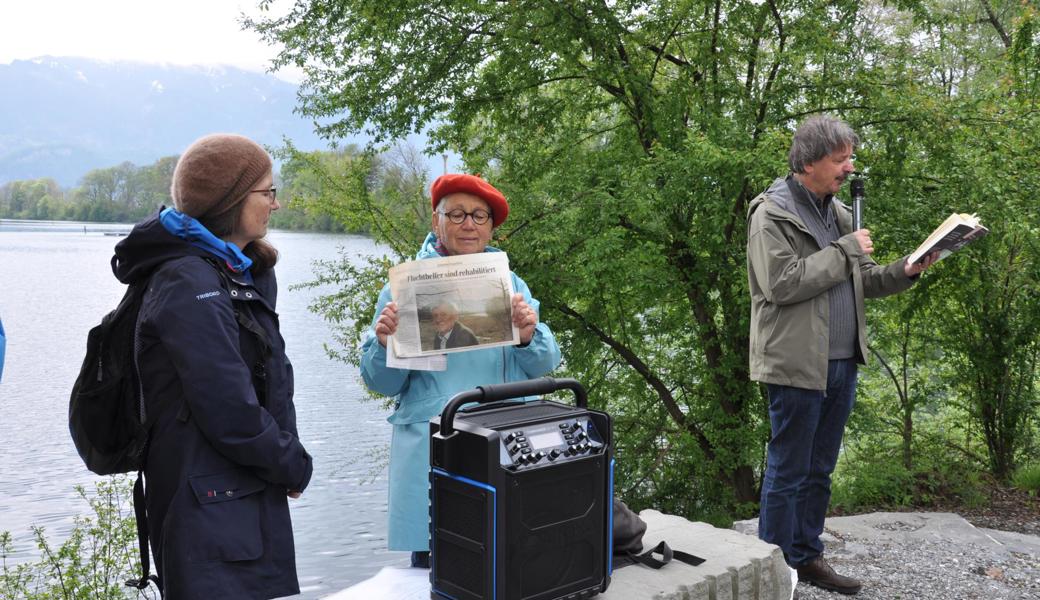 Auf einer Wanderung von Diepoldsau ins Rohr folgten gut 50 Interessierte den Spuren Paul Grüningers. SP-Ständerat Paul Rechsteiner erinnerte dabei an den St. Galler Polizeikommandanten, der in den Jahren 1938/39 mehrere hundert Flüchtlinge vor der nationalsozialistischen Verfolgung rettete. Berta Thurnherr trug kurze Erzählungen von Zeitzeugen vor.