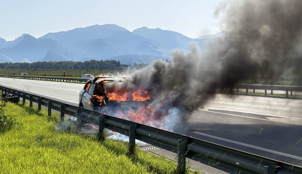 Ein 37-jähriger Mann fuhr mit seinem Auto auf der Autobahn A13 von Kriessern in Richtung Oberriet. Nach dem Autobahntunnel, Höhe Montlingen, nahm der 37-Jährige einen seltsamen Geruch wahr und fuhr vor der Ausfahrt Oberriet auf den Pannenstreifen. Als er das Fahrzeug verliess, war es bereits in Brand. Der Lenker wurde durch den Brand nicht verletzt.