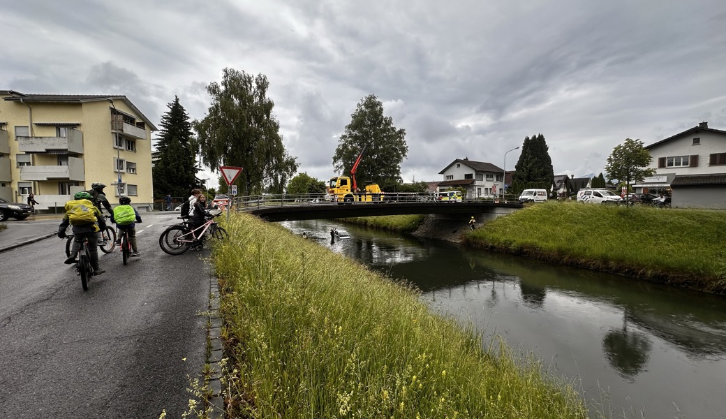 In Widnau ist ein Auto in den Kanal gestürzt. Ein Abschleppunternehmen hat es geborgen. Als der Wagen in den Kanal rollte, sass niemand drin.