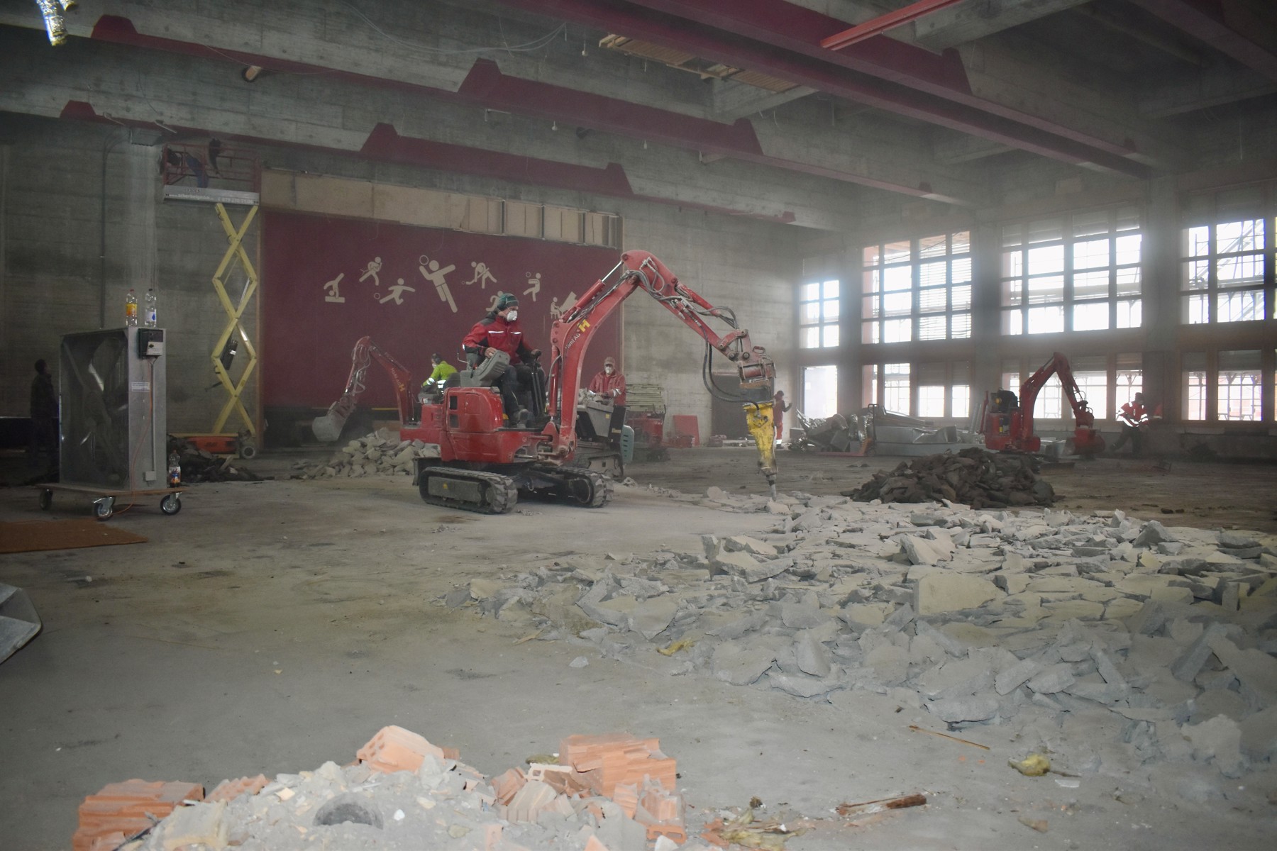 Bagger statt Turnende: Der Sporthalle wird ein zweites Leben geschenkt