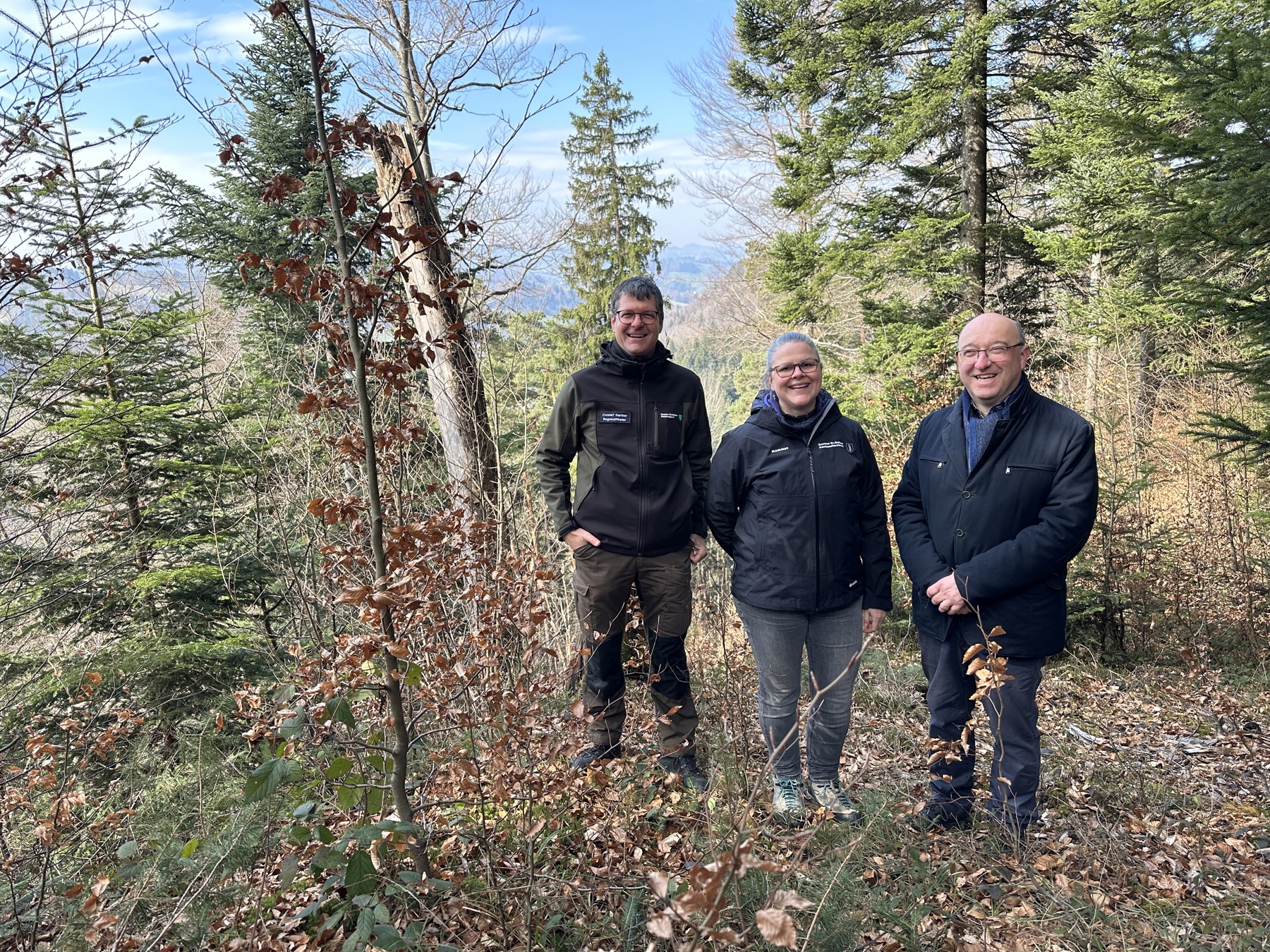 Wer heute durch den Wald geht, erlebt Natur, Ruhe und Landschaft. Dass der Wald im Kanton St. Gallen zugleich Schutzraum, Rohstoffquelle, Lebensraum, Erholungsgebiet sowie Ausbildungs- und Arbeitsort ist, gerät dabei leicht in den Hintergrund. Genau diese Vielseitigkeit rückte Regierungspräsident Beat Tinner zusammen mit Kantonsoberförsterin Caroline Heiri und Regionalförster Christof Ganter anlässlich einer Waldbegehung in Degersheim zum Tag des Waldes ins Zentrum. Im Fokus standen am Samstag, 21. März, die neuen Waldziele des Kantons und das Jubiläum zum 150-jährigen Bestehen der schweizerischen Waldgesetzgebung.