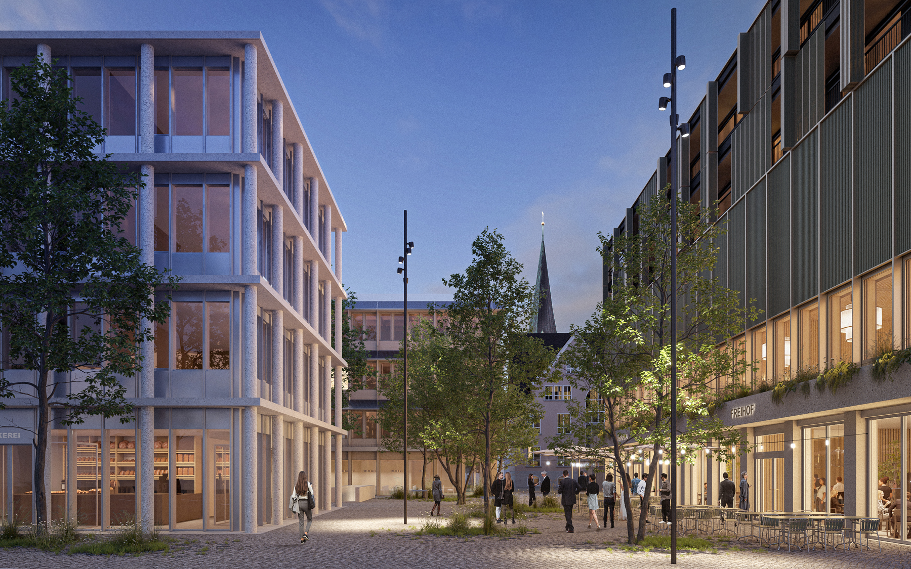 Im Neubau Freihof entsteht im Zentrum von Diepoldsau ein vielseitiger Begegnungsort. Das Restaurant Freihof mit rund 120 Innen- und 60 Aussenplätzen sowie dem neuen Freihofsaal für bis zu 380 Personen bilden das Herzstück des neuen Dorfkerns. Ergänzt wird das Angebot durch neun möblierte Apartments.