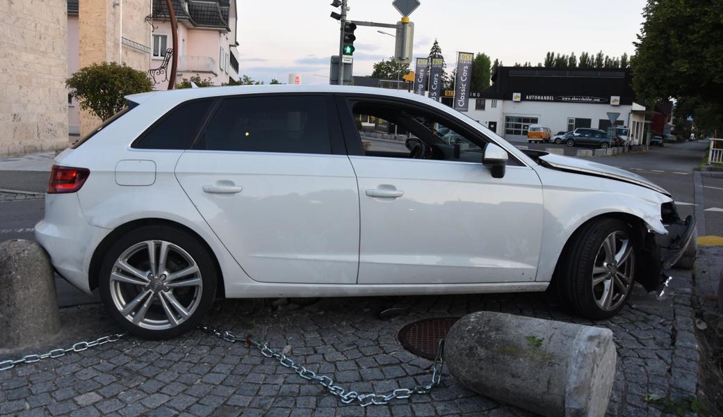 Der 35-Jährige fuhr laut einer Mitteilung der Kantonspolizei St.Gallen in Richtung Poststrasse. Als er sich laut eigenen Angaben während der Fahrt nach rechts unten beugte, um ein Stück Pizza aus einer Kartonschachtel zu nehmen, verlor er die Kontrolle über den Wagen und kollidierte am Ende der Rütistrasse mit einem Steinpoller.Durch die Kollision kippte das Auto auf die linke Seite und kam so zum Stillstand. Die durchgeführten Atemalkoholtests zeigten gemäss Polizeimeldung ein positives Resultat. Am Auto entstand Totalschaden.