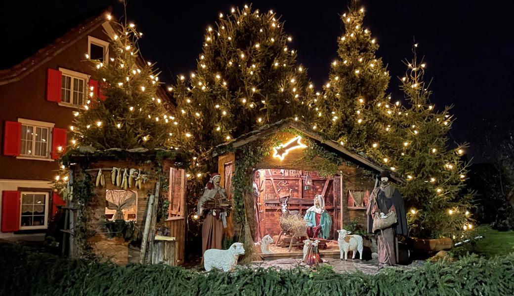 Bereits in der Vorwoche wurden durch die Forst Rüthi-Lienz AG die grossen Tannen gefällt, an die Maadstrasse 2 transportiert und aufgerichtet. Jeweils am Samstag vor dem ersten Advent findet der Krippenbautag statt. Unter der fachkundigen Leitung des neuen Bauchefs Nicola Eggenberger kümmerte sich eine Gruppe um den Aufbau der Krippe mitsamt Stall, während eine weitere Gruppe die zahlreichen Dekorationselemente der liebevoll geschmückten, lebensgrossen Weihnachtskrippe organisierte.Parallel zum hektischen Treiben auf dem Krippenplatz, wurden die drei grossen Tannen mit Lichterketten geschmückt. Die IG Büchel erfreute sich grosser Unterstützung. Damit die Arbeit auf zehn Metern über Boden sicher ausgeführt werden konnte, standen zwei Hebebühnen und ein Teleskoplader zur Verfügung.Tradition, die nicht mehr wegzudenken istZur besinnlichen und gemütlichen Krippenfeier sind alle Interessierten von nah und fern eingeladen.Begrüsst werden die Besucherinnen und Besucher durch Alphornklänge. Zu den weiteren Ereignissen an der Feier gehören das Friedenslicht der Pfadfinderabteilung Kamor sowie die Weihnachtsgeschichte, vorgetragen vom Pastoralassistenten Richard Schmidt. Zum Verweilen lädt die Festwirtschaft ein, sei es bei Glühwein oder einem kleinen Imbiss.Der Einlass ist auf 300 Personen limitiert und auf dem ganzen Areal herrscht eine generelle Maskenpflicht.Adventsmarkt erst im nächsten Jahr möglichDer eigentlich für dieses Jahr geplante erste Büchler Weihnachtsmarkt wird aus bekannten Gründen ins nächste Jahr verschoben. Der neu ins Leben gerufene Anlass soll am Samstag, 10. Dezember 2022, im Gebiet Winkelstrasse, Rheinstrasse und Ringstrasse stattfinden. Der Markt richtet sich an lokale Vereine, Hobbybastler und Kunsthandwerker, die ihre Produkte am Markt präsentieren und veräussern wollen.Sobald mehr über Inhalt und Umfang des Marktes bekannt ist, wird das Organisationskomitee gezielte Anfragen starten. Die geplante Festwirtschaft soll durch die IG Büchel betrieben werden und der Erlös soll dem Unterhalt der Krippe zugute kommen.
