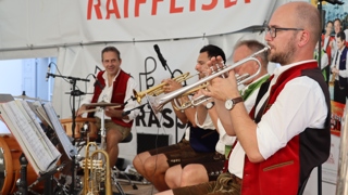 Zum zweiten Mal organisierte die Stadtmusik Altstätten anlässlich des Augstemarkts bereits am Sonntag einen Frühschoppen auf dem Rathausplatz. Die Altstätter Formation "jukeBRASS" und die bekannten Musiker von "Alpenblech" aus Deutschland machten gute Stimmung.