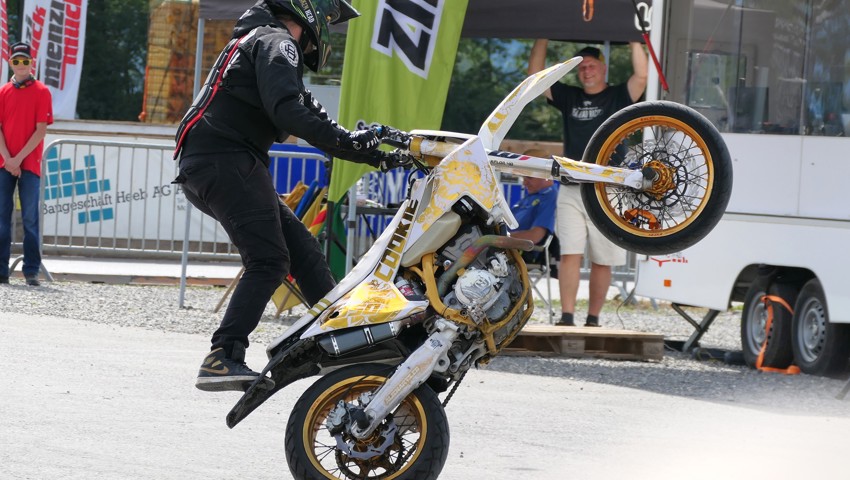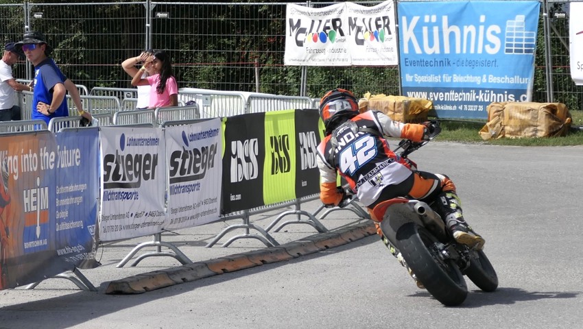 Der Duft nach verbranntem Gummi, nach Öl und Benzin hing in der Luft der Allmend – ein Duft, den alle Fans des Motorsports lieben. Für die Benzinbrüder und -junkies ist es ein Parfüm. Dazu kamen das Gekreische und Gebollere der Motoren. Beim Supermoto sind dies vor allem Einzylinder, seltener auch Zweizylinder. Sie haben einen Hubraum von 125 bis 600 Kubikzentimetern.