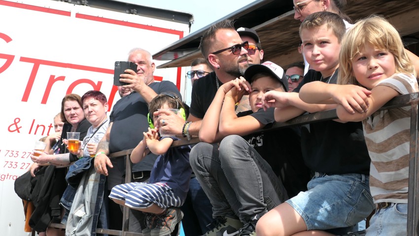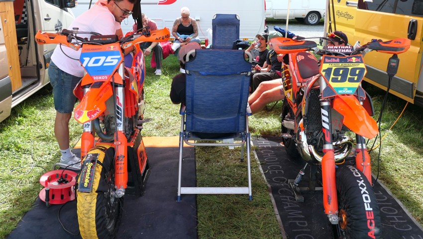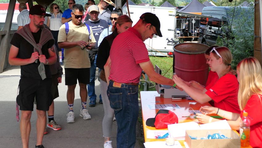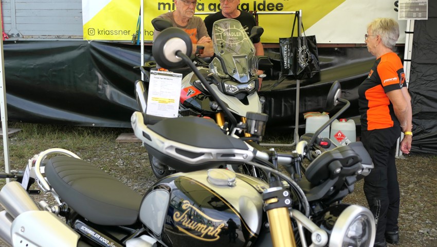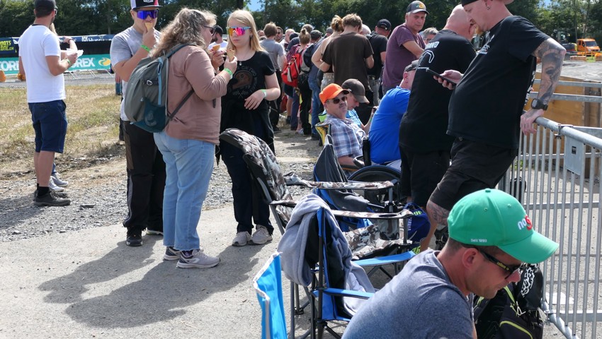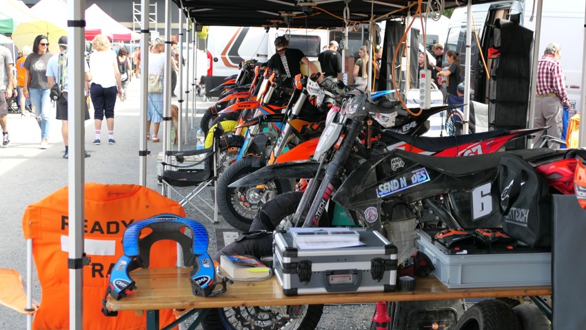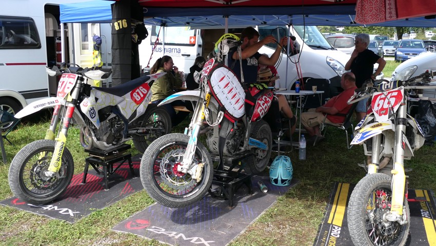 Der Aufmarsch der über beide Tage etwa 2500 Besucherinnen, Besucher und Fans fand seinen Weg mitten durch das Fahrerlager. Die lange Mittagspause bot Zeit, mit den Moto-Cracks in Kontakt zu kommen, die Maschinen, Lederkombis und Schutzausrüstungen zu bewundern. Und sich davon zu überzeugen, dass die Supermoto-Maschinen ein straffer abgestimmtes Fahrwerk mit kürzeren Federn sowie leistungsstärkeren Bremsen am Vorderrad bieten. Der Hauptunterschied zu Enduros und Motocrossern liegt in der Verwendung von Strassenreifen oder sogar Slicks auf kleineren und breiteren Felgen.