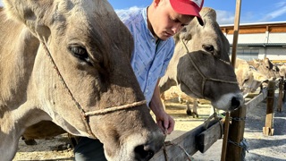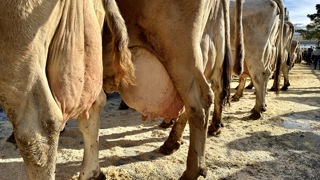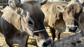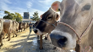 Bei der traditionellen Viehschau in Oberriet steht das Vieh heute dicht gedrängt nebeneinander. Während am Vormittag durch kantonale Experten die Tiere bewertet wurden, findet am Nachmittag eine Tier-Vorführung mit Kommentator im Ring aus Sägemehl statt.