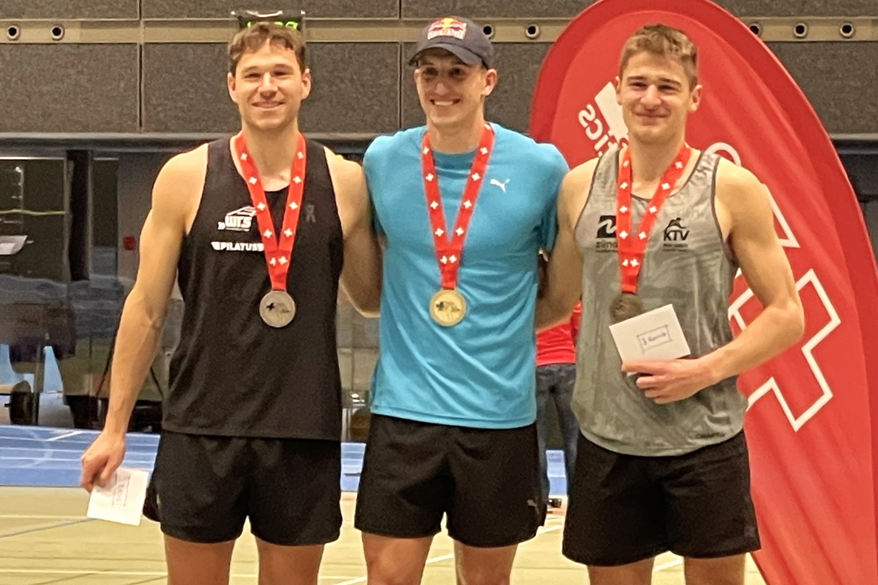 Nur wenige hatten Jodok Buschor als Medaillengewinner auf der Rechnung. Doch er wusste um seine Stärken und glaubte an seine Chance, sollte ihm ein perfekter Wettkampf gelingen. Er steigerte seinen Siebenkampf-Rekord um 232 Punkte und rettete Bronze um 23 bzw. 27 Punkte Vorsprung ins Ziel. Nachdem er letztes Jahr verletzt fehlte, nahm er hinter Simon Ehammer, der fast einen neuen Schweizer Rekord erzielte, und dem Internationalen Nino Portmann seine zweite Elite-SM-Medaille in Empfang. Steiger erzielte im 1000m-Lauf einen weiteren Rekord und wurde mit 4805 Punkten Vierter. Er verpasste das Podest um 200 Punkte, war aber mit fünf Rekorden und im Wissen, dass vor ihm nur ältere Athleten rangiert waren, sehr zufrieden.