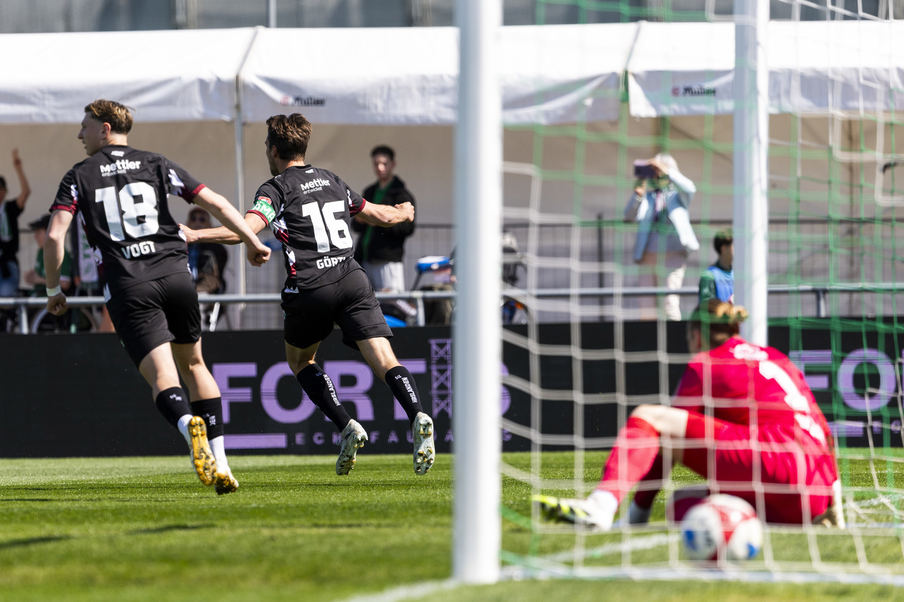 Und dann ging es los bei strahlendem Sonnenschein und die erste heisse Szene liess nicht lange auf sich warten. Baldé fiel nach einem Dribbling im Strafraum, Schiedsrichter Fedayi San liess weiterlaufen. Dann in der 6. Minute ein Eckball für die Gäste, Torhüter Enzler pariert zuerst den Kopfball von Baldé, doch Captain Görtler ist hellwach und zimmert den Ball ins Netz zur frühen St.Galler Führung. Nach elf Minuten hätte gar bereits das zweite Tor fallen müssen. Topscorer Vogt schob den Ball aus aussichtsreicher Position am rechten Pfosten vorbei. Später würde sich noch zeigen, wie wertvoll dieser zweite Treffer gewesen wäre.