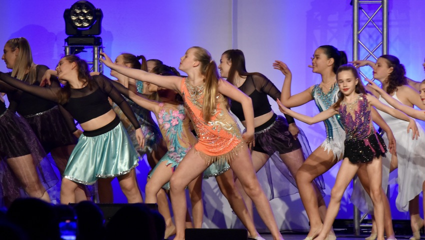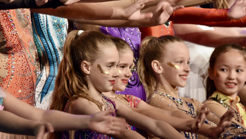 Nun ist die Reihe an Mirjam Vogel von RG/Gym Diepoldsau-Schmitter. Auf der Bühne sind nun ihre Mädchen und Frauen, die das Publikum mit ihrer Nummer begeistern. Es komme gar nicht so oft vor, dass die RG-Mädchen und die Gymnastik-Sektion gemeinsam auf der Bühne stehen.