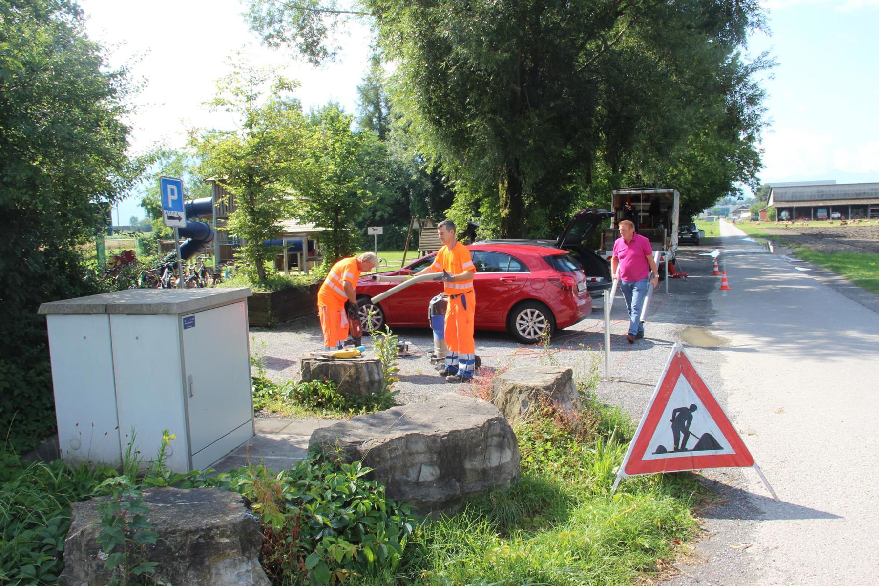 schönen Ort festen lässt, doch das ist nicht der Zweck dieses Spielplatzes.]Spielplatz für Familien aus der UmgebungDie Zweckentfremdung des Areals ist nicht im Sinne einheimischer Familien, die zum Spielplatz kommen, um hier erholsame Stunden zu verbringen und vielleicht zu grillen. Also handelt nun die Ortsgemeinde, indem sie das freie Parkieren stark einschränkt. Die Ortsgemeinde verfolgt das Ziel, dass der naturnahe Ort vorwiegend mit dem Velo aufgesucht wird. «Der Spielplatz soll primär als Spielplatz genutzt werden», sagt Mario Zürn. Das Grillieren ist nicht als Hauptvergnügen gedacht, sondern als Zusatzfreude.Nur noch rund ein halbes Dutzend Plätze für alleSeit Mittwoch wird der langgezogene Parkplatz beim Spielplatz neu gestaltet. Neben der 1,60 Meter breiten Durchfahrt für Velos und Anhänger sind künftig vier Parkplätze gesperrt. Nur Mieter des kleinen Gebäudes beim Spielplatz sind berechtigt, hier die Autos abzustellen. Neu werden zudem zwei entsprechend gekennzeichnete Behindertenparkplätze verfügbar sein. Die künftig nur noch wenigen öffentlich nutzbaren Parkfelder werden in Längsrichtung angeordnet. Somit werden Autos nicht mehr mit dem Heck halb auf der Strasse stehen. Die Zahl der öffentlich nutzbaren Parkfelder verringert sich durch die Neugestaltung auf zirka ein halbes Dutzend.