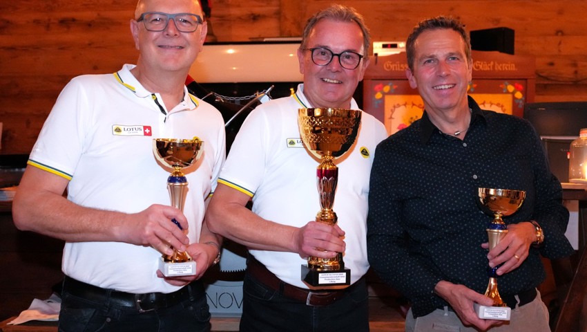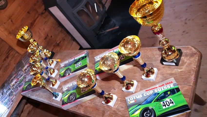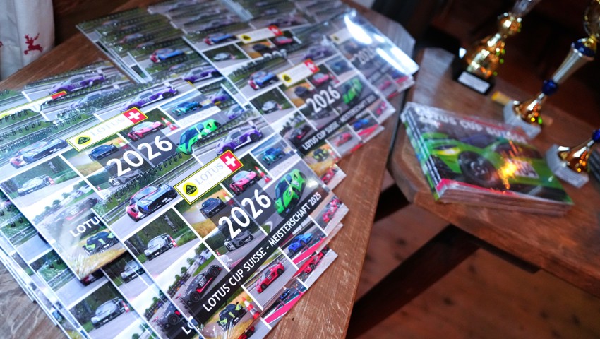 Zum gemeinsamen Ausklang der Saison 2025 trafen sich die Fahrerinnen und Fahrer im Chalet des Hotels Eichberg, das auf einem gleichnamigen Hügel in Seengen AG steht. Das Hotel mit Aussicht über den Hallwilersee wird von Hannes Mahler und seiner Familie geführt. Dieser ist nicht nur Gastronom, sondern auch schnell: Er gewann die Competition Class des Lotus-V6-Cups Suisse in den Jahren 2022 und 2023.