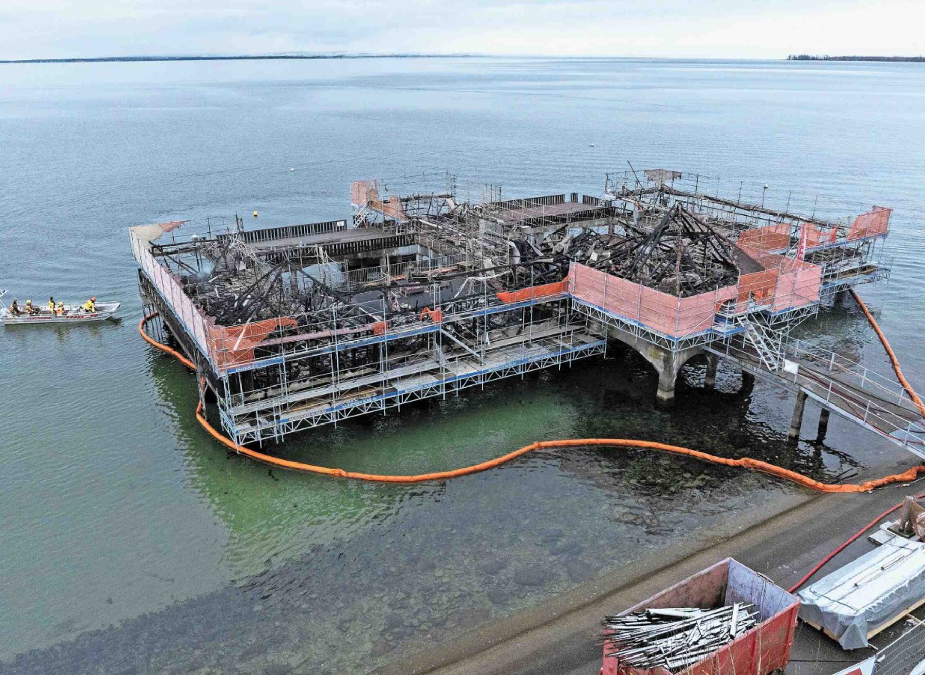 Die Brandruine der Badhütte bleibt bis zum Wiederaufbau